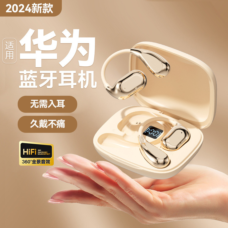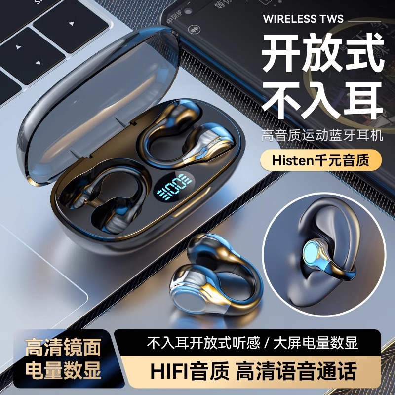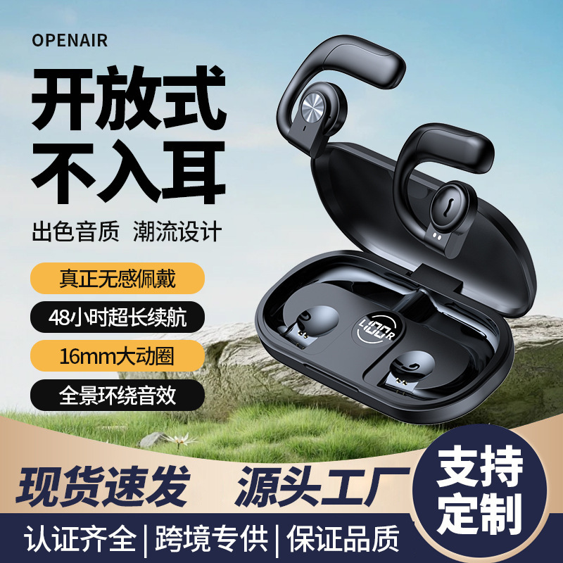 跨境2024新款不入耳蓝牙耳机OWS挂耳式运动耳机数显超长续航降噪