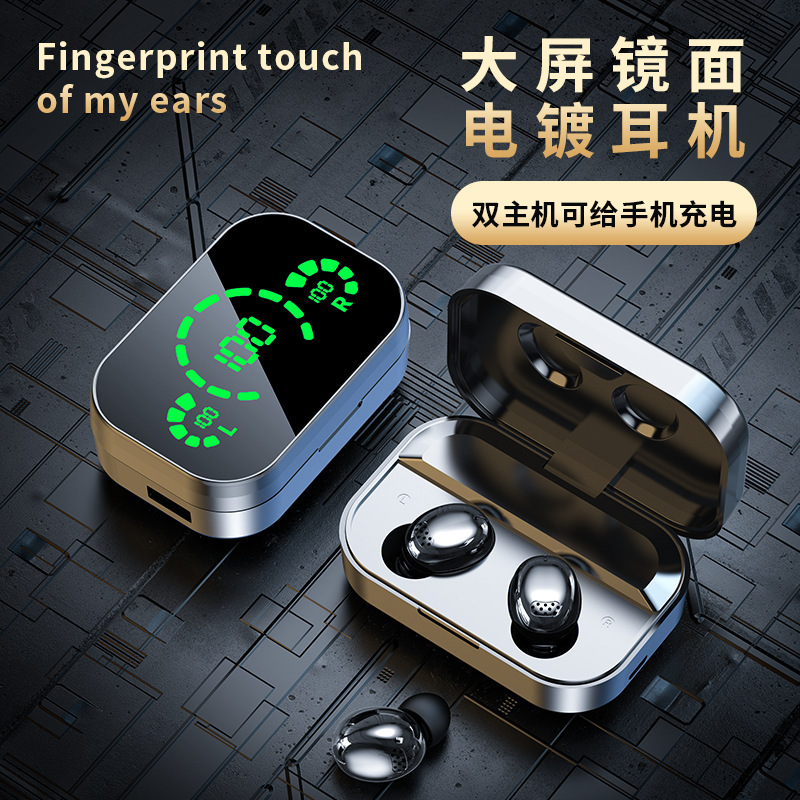 跨境电商爆款YD08镜面数显无线蓝牙耳机入耳式长续航带柄运动耳机