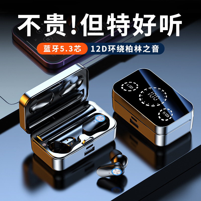 YD04新品私模无线蓝牙耳机TWS大屏智能数显入耳式呼吸灯运动耳机