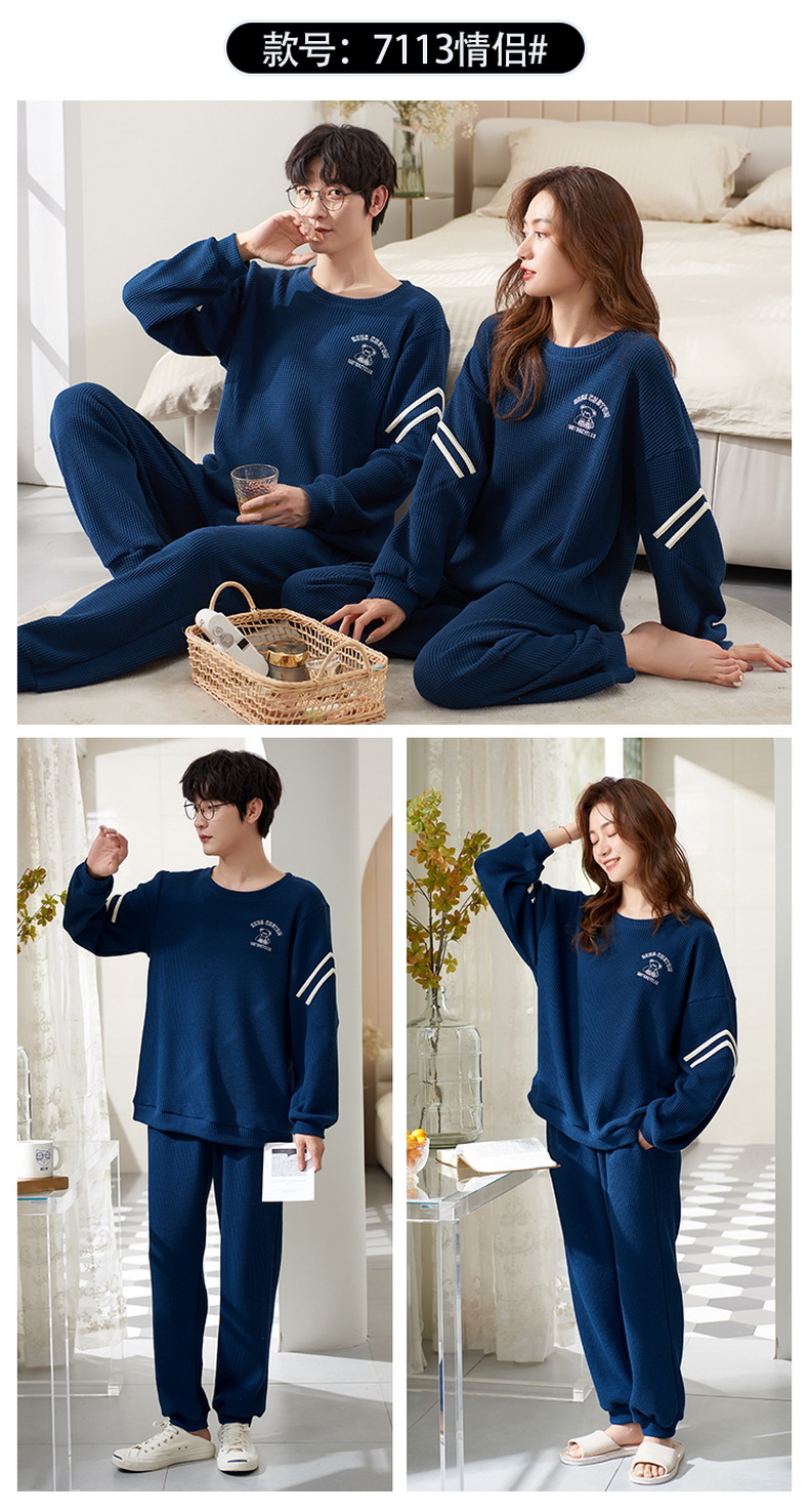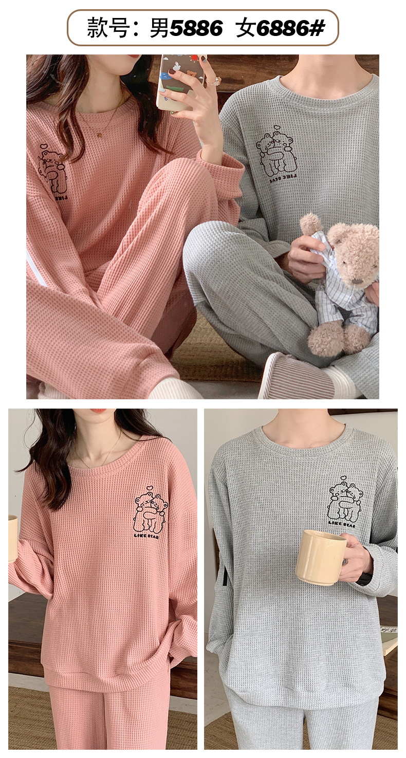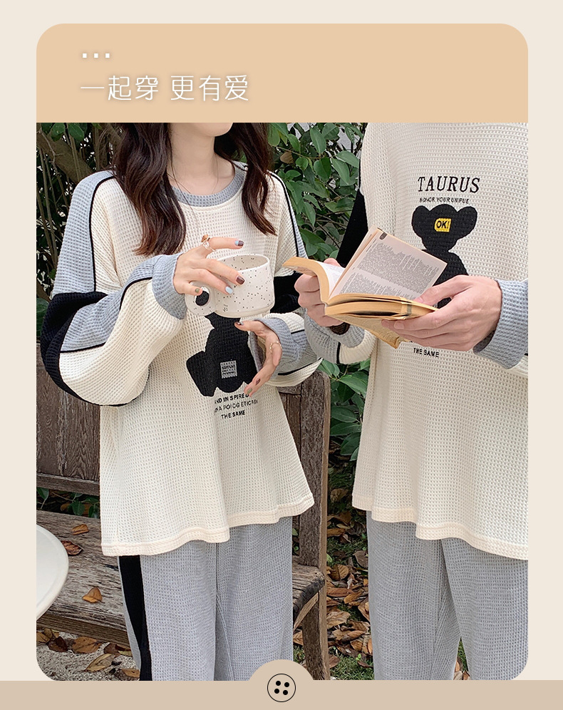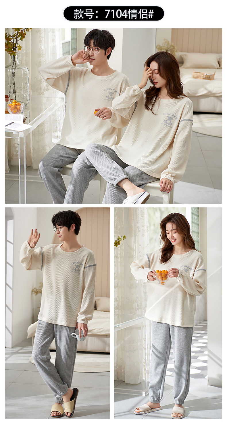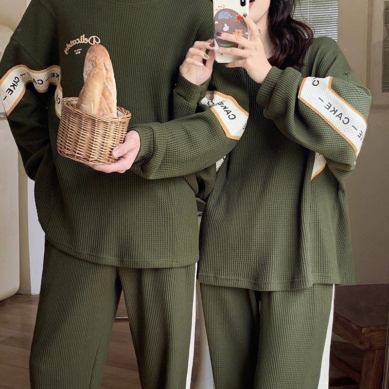 커플 잠옷 여자의 봄과 가을 긴 소매 캐주얼 와플 얇은 세트 청소년 남자의 겉옷 가정 옷스토어 가기