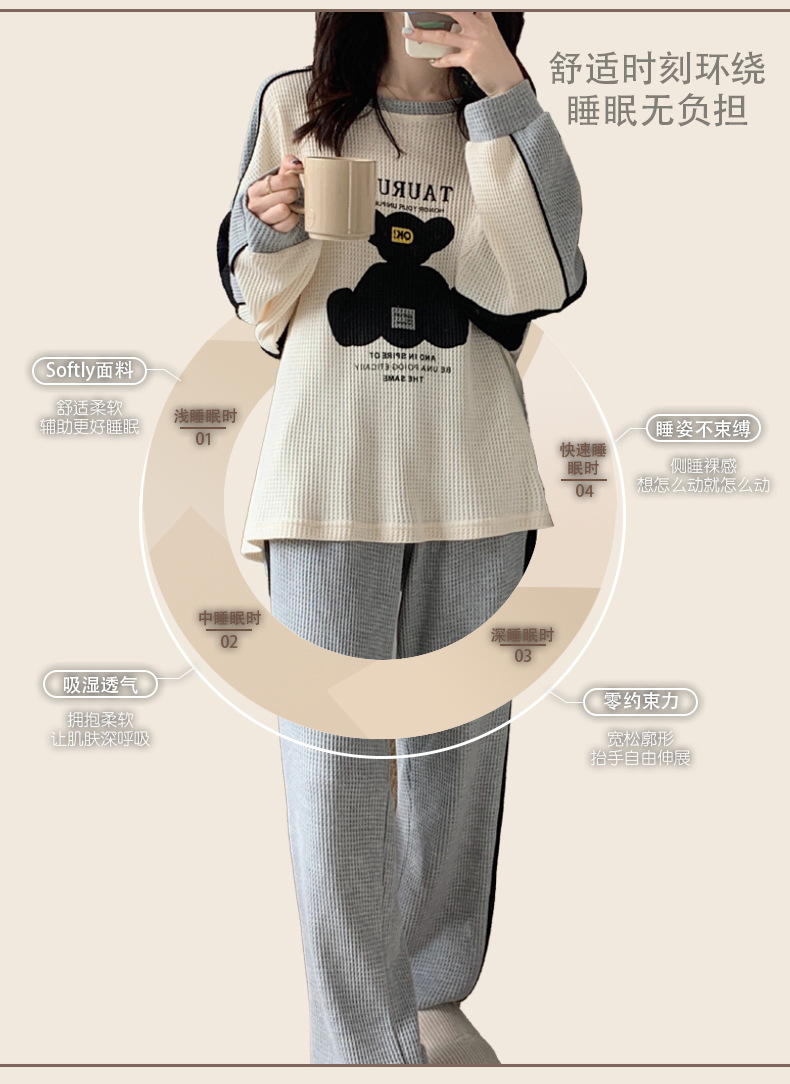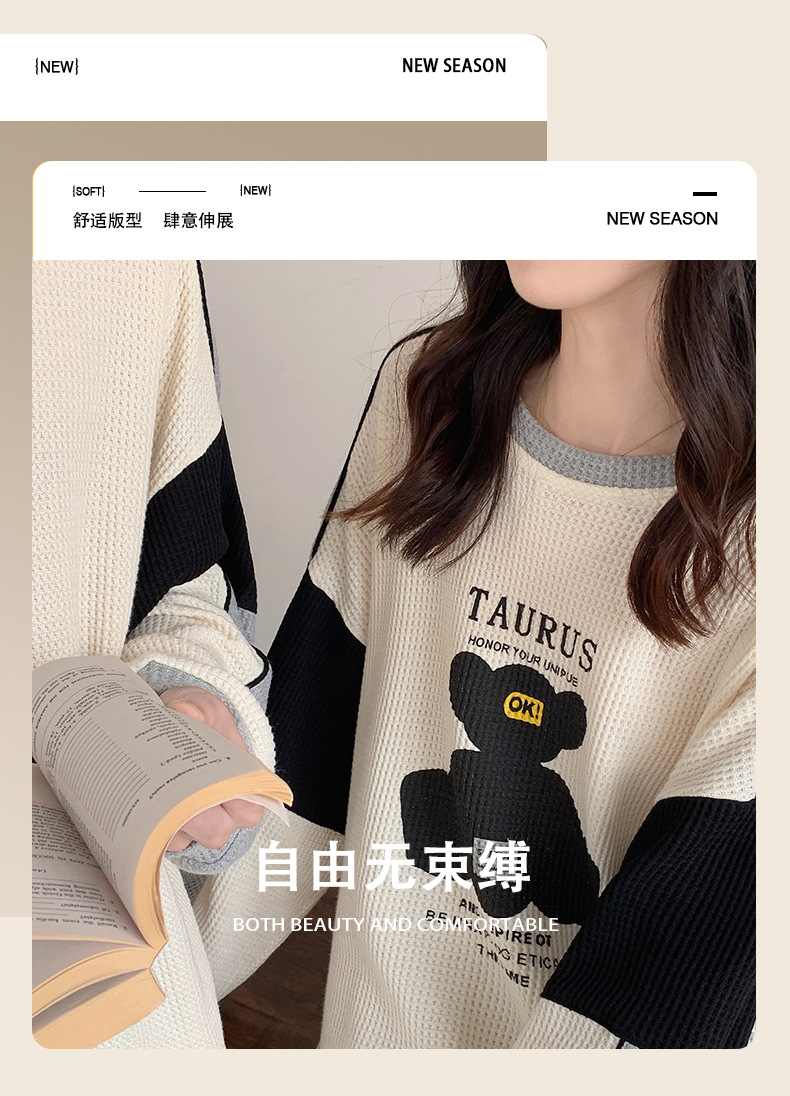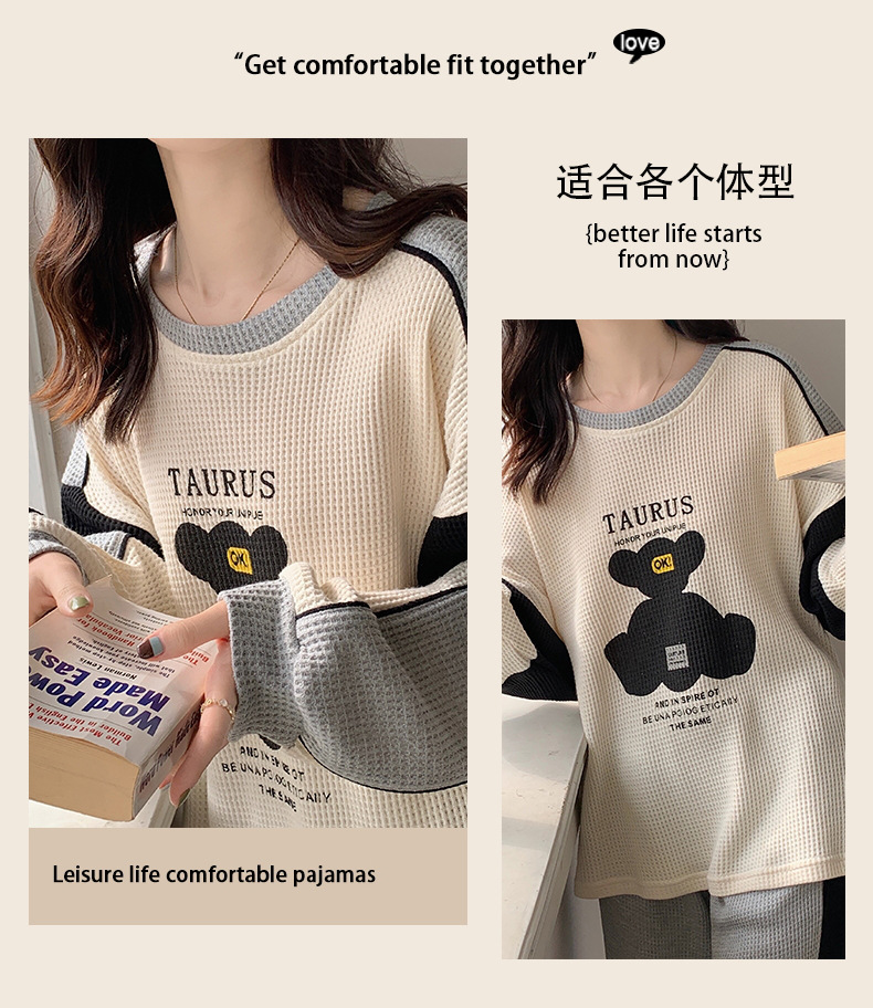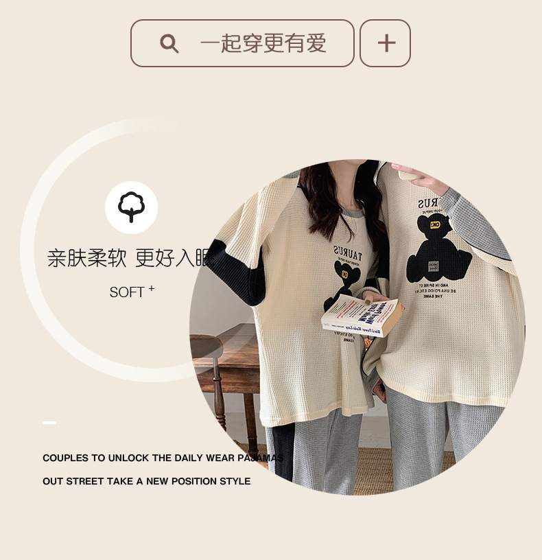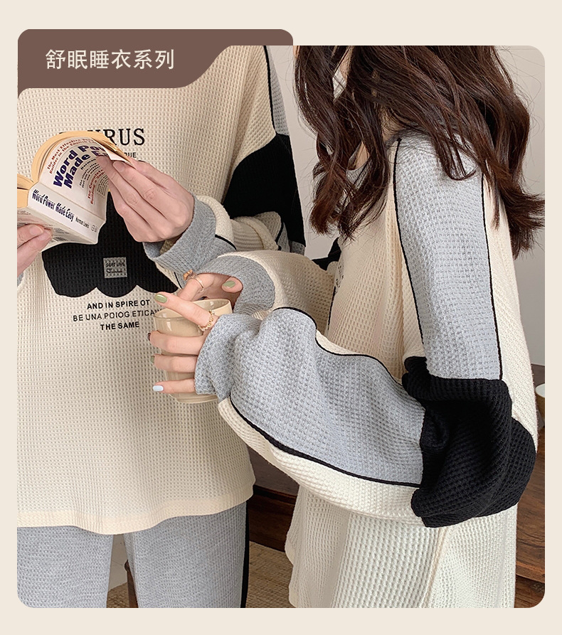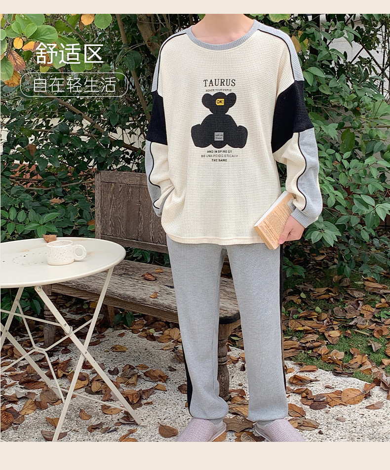커플 잠옷 여자의 봄과 가을 긴 소매 캐주얼 와플 얇은 세트 청소년 남자의 겉옷 가정 옷스토어 가기
