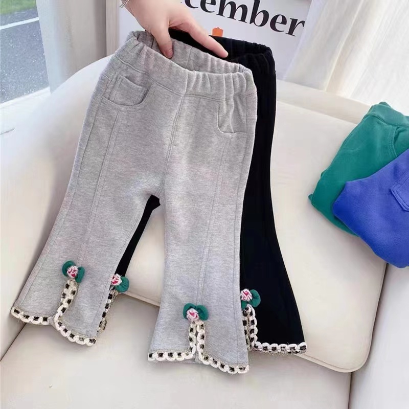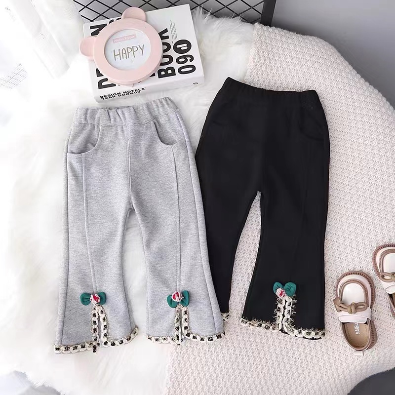 2023 여아 바지 새로운 어린이 봄 가을 슬릿 캐주얼 바지 아기 소녀의 서양식 플레어 팬츠 모든 매치 바지스토어 가기