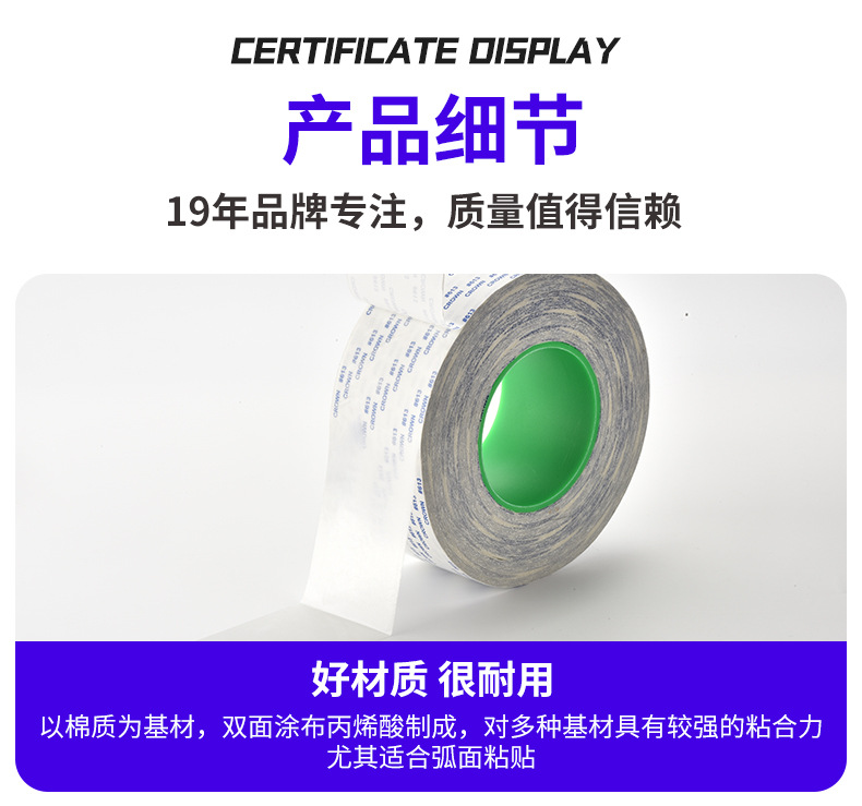 皇冠613双面胶强力高粘半透明双面胶带 铭牌纸盒灯带固定无痕胶带