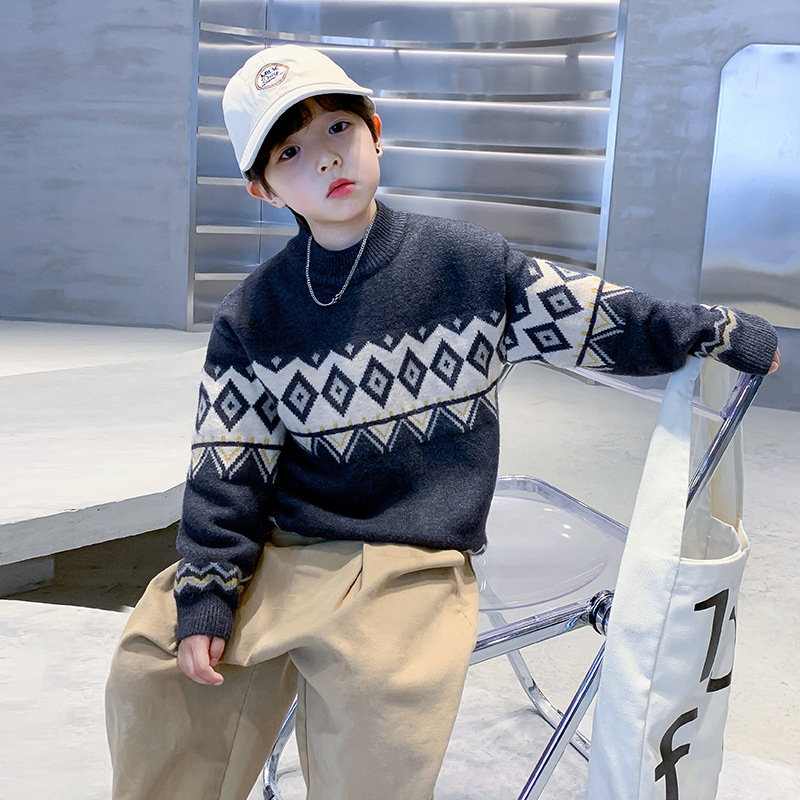 트렌디한 브랜드 두꺼운 남아용 라운드넥 스웨터 겨울 신상품 2025 어린이용 니트웨어 중대형 어린이용 기본 니트스토어 가기