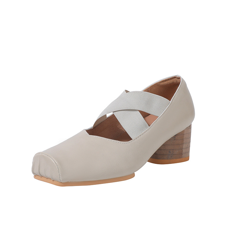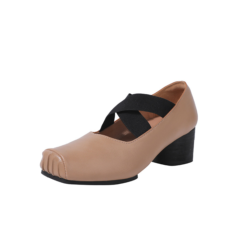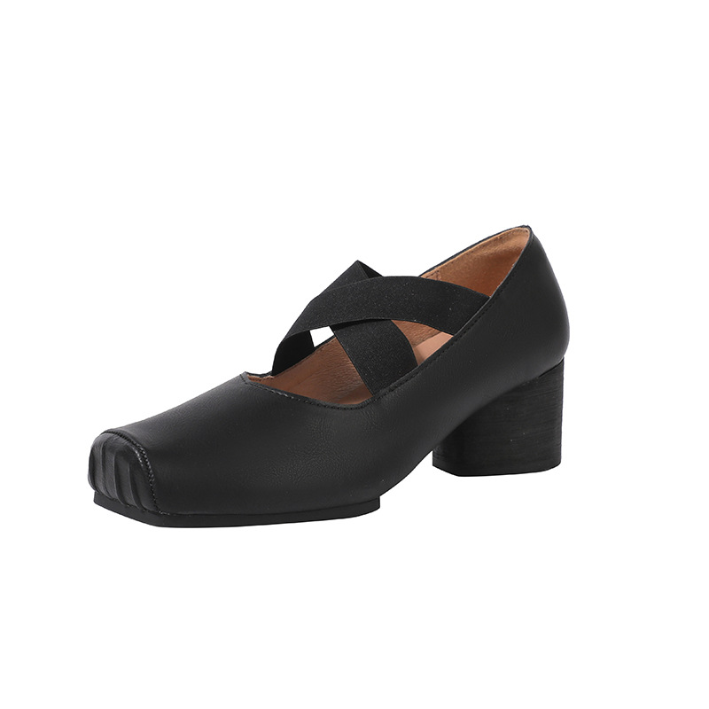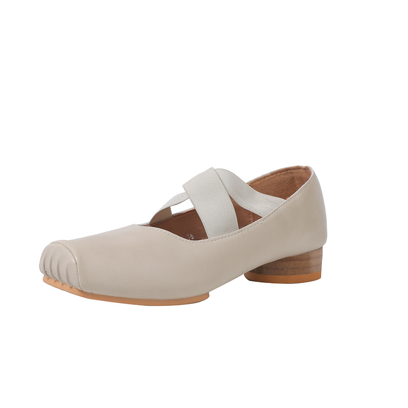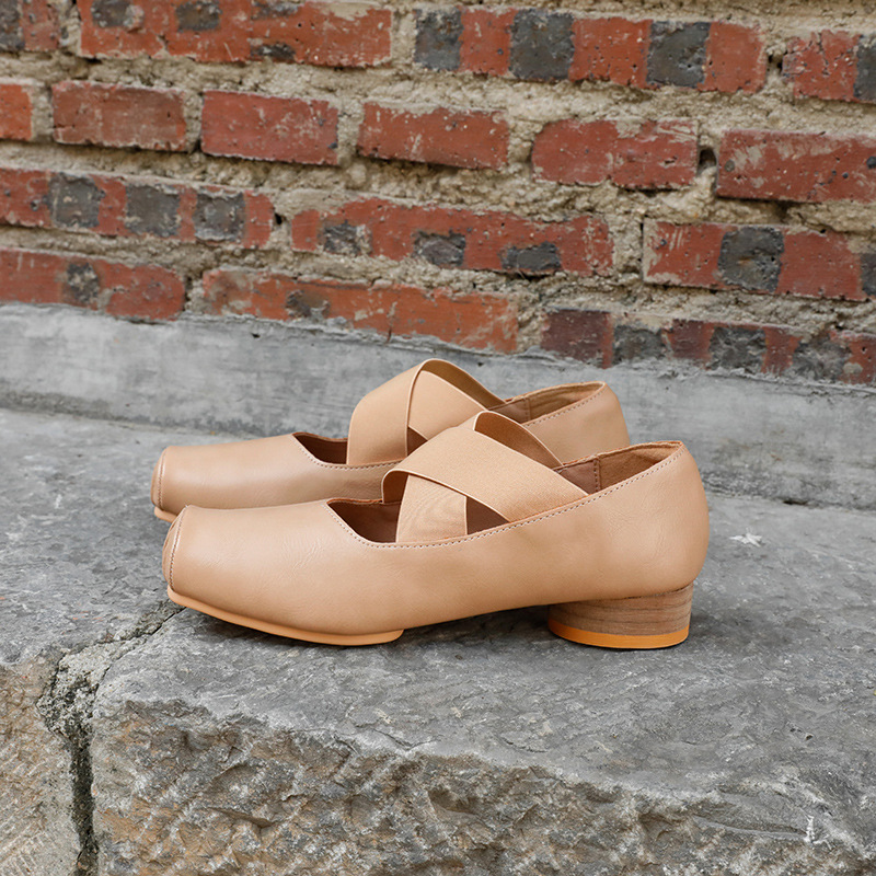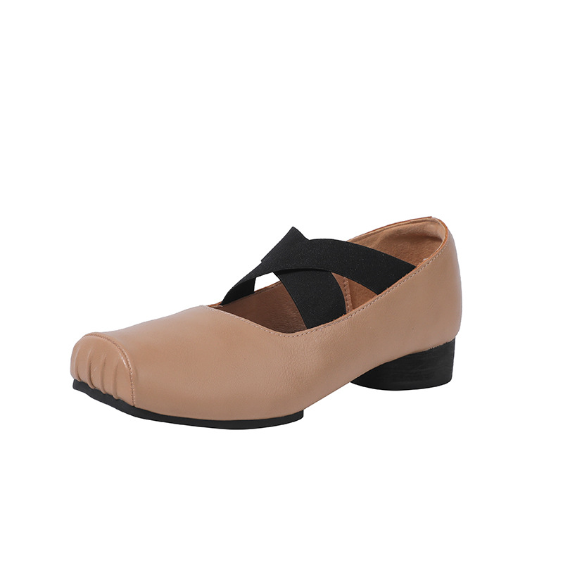 정품 가죽 메리 제인 여성 2025 새로운 크로스 스트랩 플리츠 스퀘어 발가락 레트로 두꺼운 뒤꿈치 발레 신발 겉옷스토어 가기