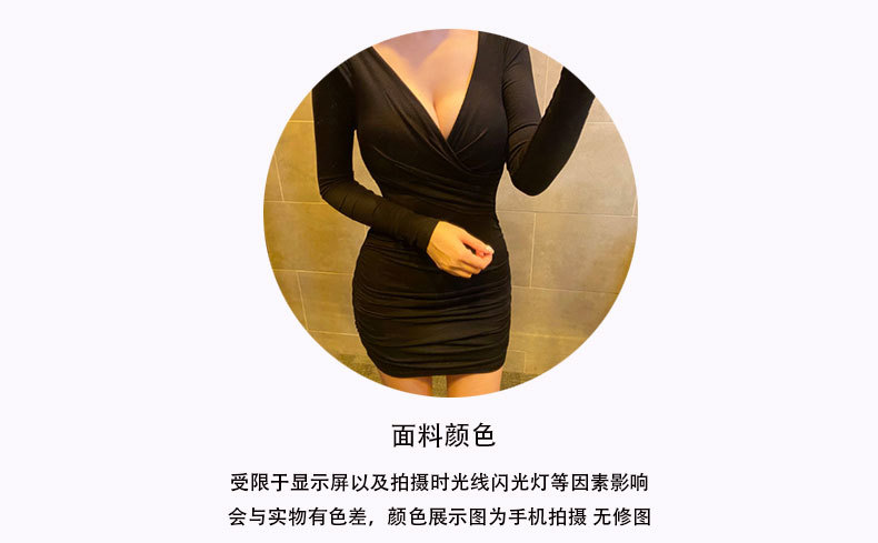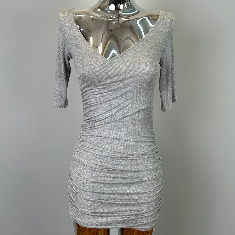 한국 동대문 새로운 꽉 엉덩이 원피스 여성 섹시한 가슴 짧은 원피스 회색 긴 소매 패션