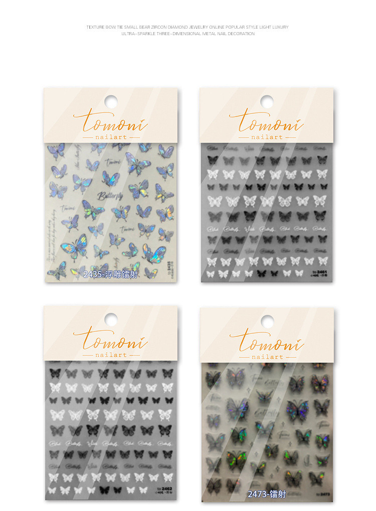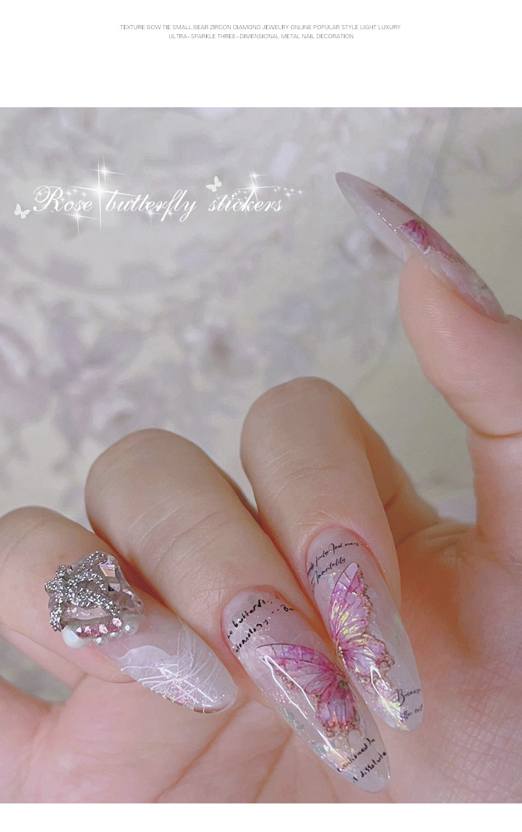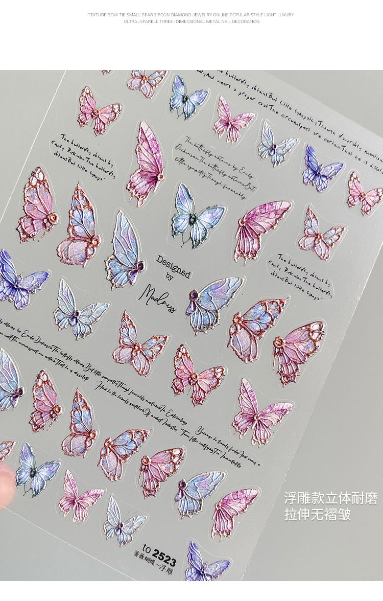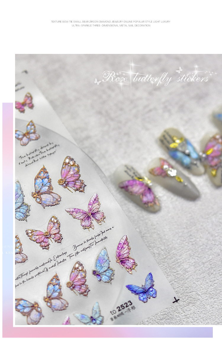장미 나비 네일 아트 스티커 입체 릴리프 토모니 수채화 블루 핑크 얇은 터프 윙 영어 네일 데칼