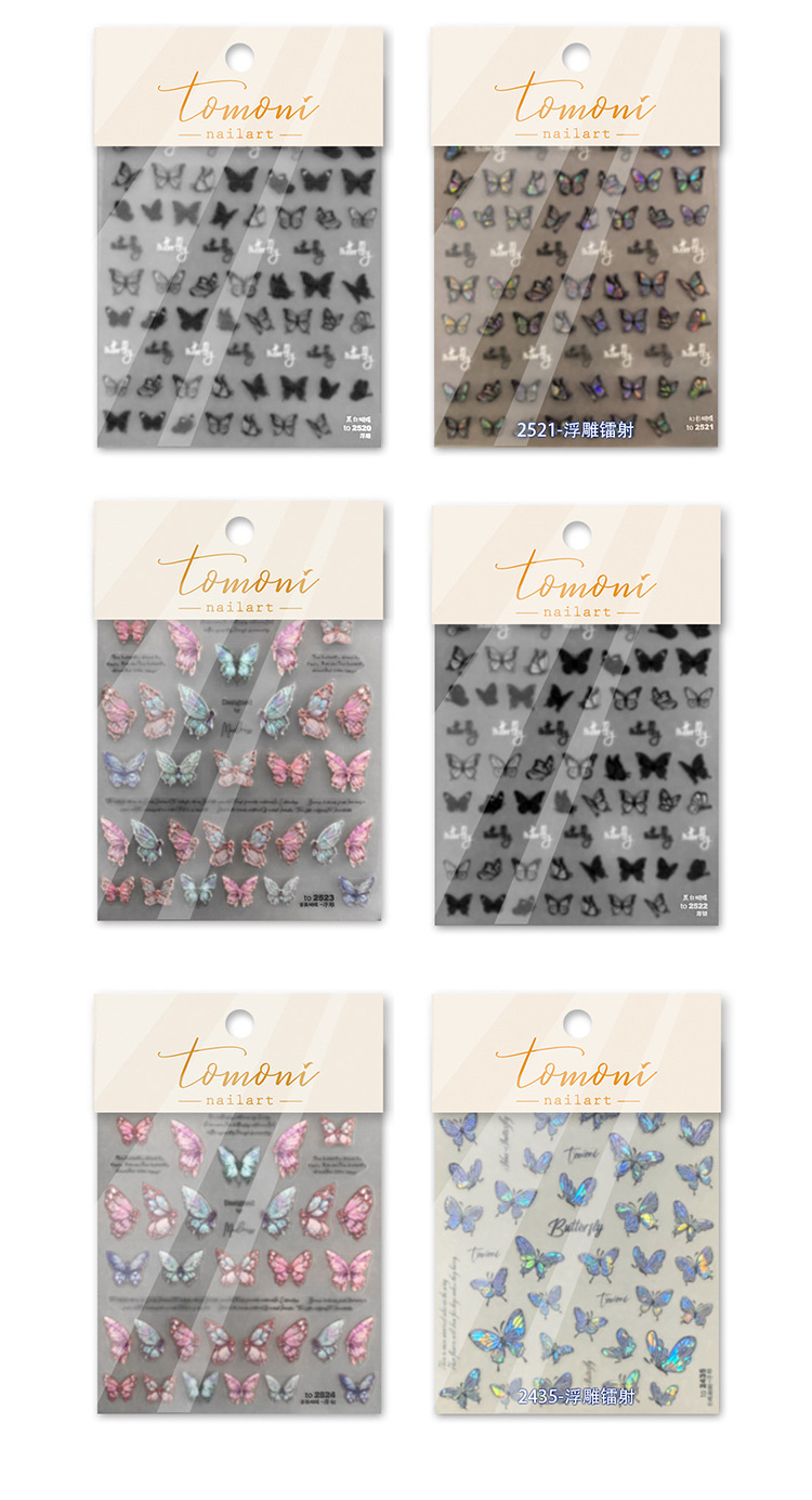 장미 나비 네일 아트 스티커 입체 릴리프 토모니 수채화 블루 핑크 얇은 터프 윙 영어 네일 데칼스토어 가기