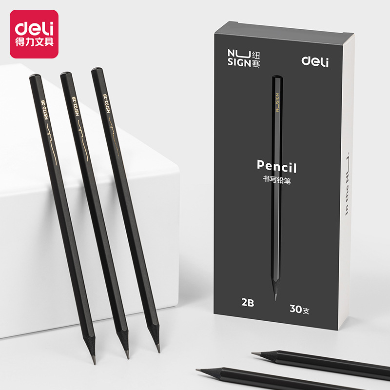 Delinius 검정 육각봉 2B 필기 연필 흑연 납 HB 검정 초고 색상 값 (30 PC/상자)