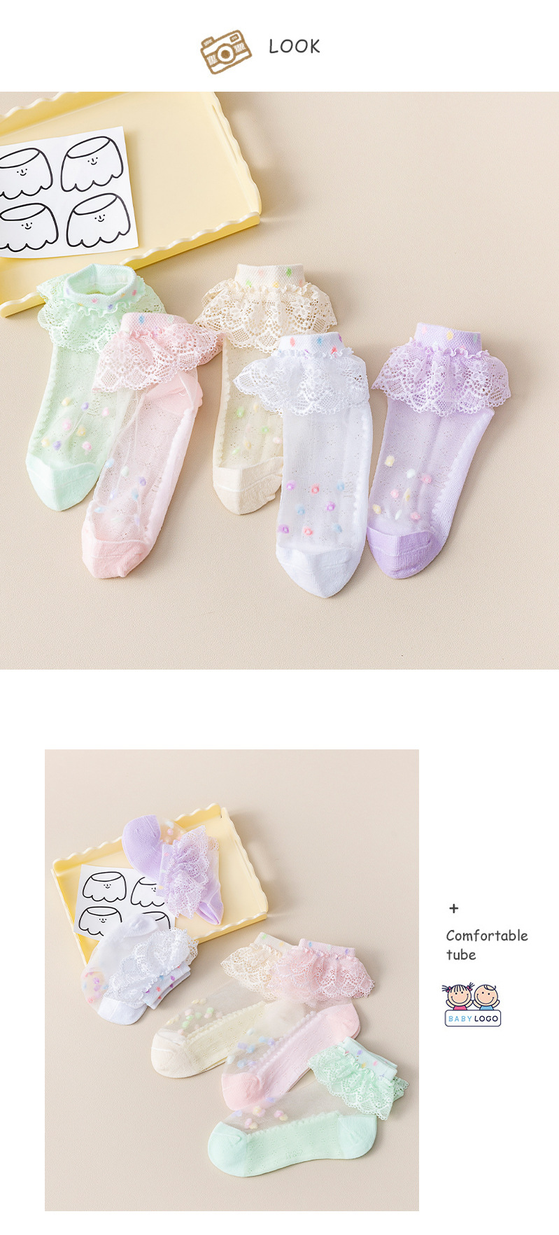 작은 토끼 소녀 양말 2023 새로운 봄과 여름 어린이 통기성 레이스 한국 스타일 아기 공주 크리스탈 양말