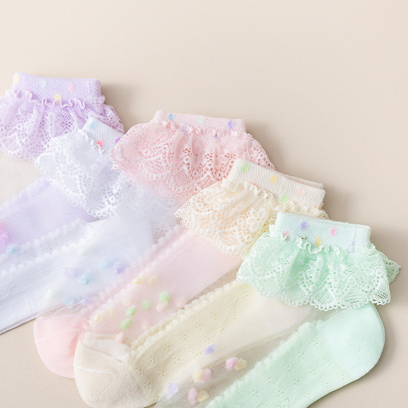 작은 토끼 소녀 양말 2023 새로운 봄과 여름 어린이 통기성 레이스 한국 스타일 아기 공주 크리스탈 양말스토어 가기