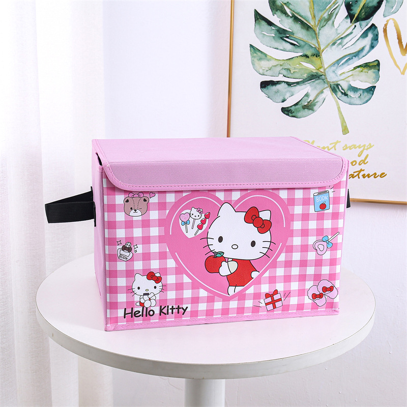 만화 PU 가죽 플립 데스크탑 잡화 저장 상자 사무실 침실 접이식 보관 상자