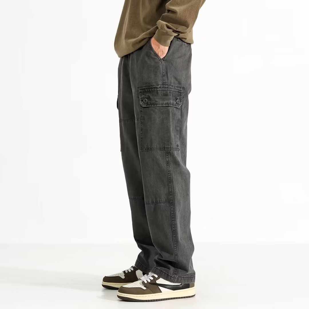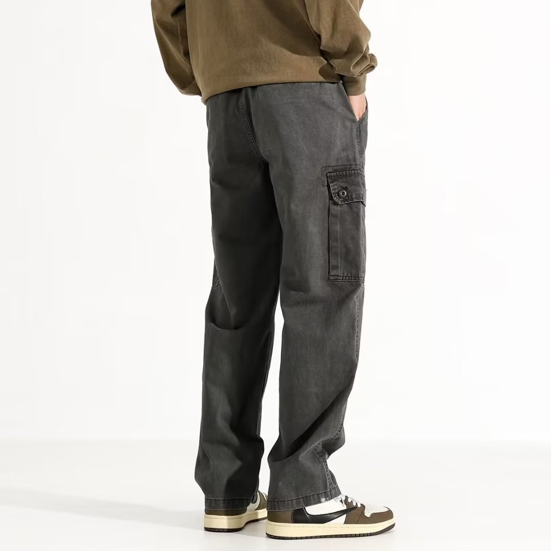 레트로 툴링 스트레이트 팬츠 남자의 2022 가을과 겨울 일본의 올드 느슨한 와이드 레그 캐주얼 긴 바지 머리카락의 세대