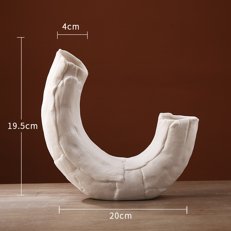 국경 간 북유럽 창조적 인 기하학적 라인 세라믹 꽃병 거실 꽃 배열 일반 흰색 세라믹 말린 꽃 가정 장식품스토어 가기