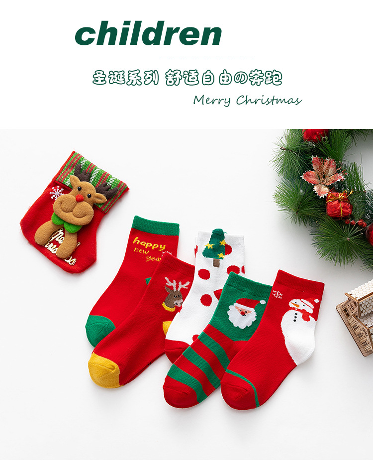 어린이 새해 크리스마스 양말 가을과 겨울 소년과 소녀 양말 면 양말 어린이 아기 양말 학생 빨간 양말