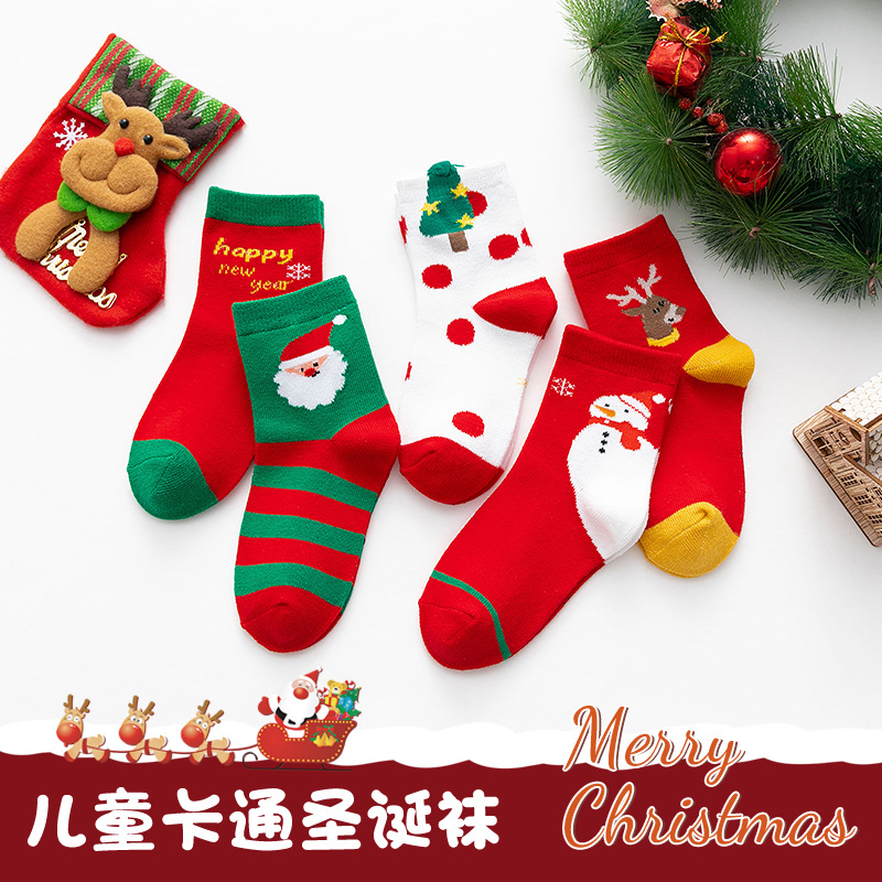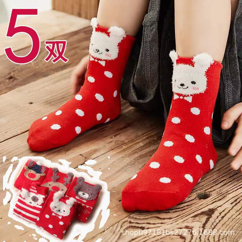 어린이 새해 크리스마스 양말 가을과 겨울 소년과 소녀 양말 면 양말 어린이 아기 양말 학생 빨간 양말스토어 가기