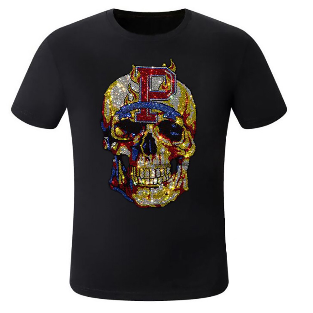핫 다이아몬드 반팔 남성용 2023 년 여름 새로운 유럽 역 산스크리트어 반팔 유행 탑 남성용 티셔츠베이스 셔츠 트렌디스토어 가기