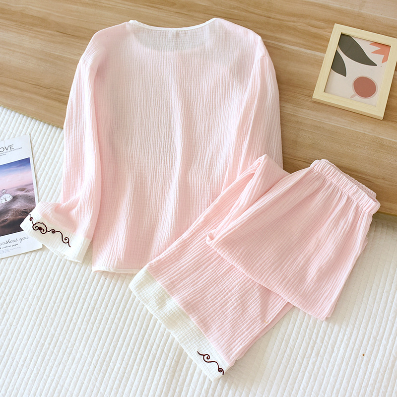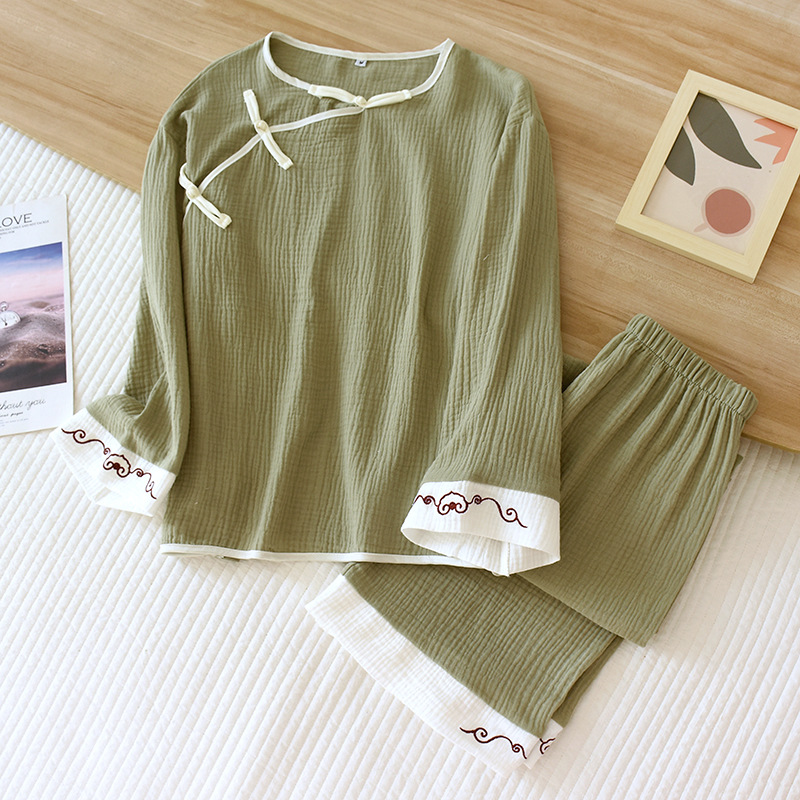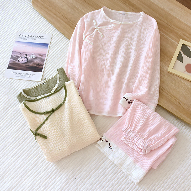 [골동품] 잠옷 여자의 봄과 가을 여름 면 거즈 긴 소매 가정 옷 가을과 겨울 얇은 세트