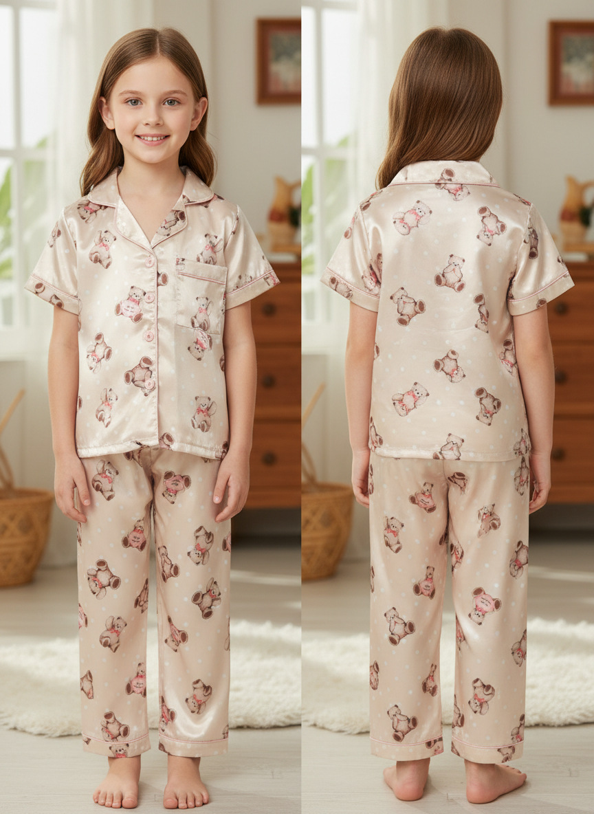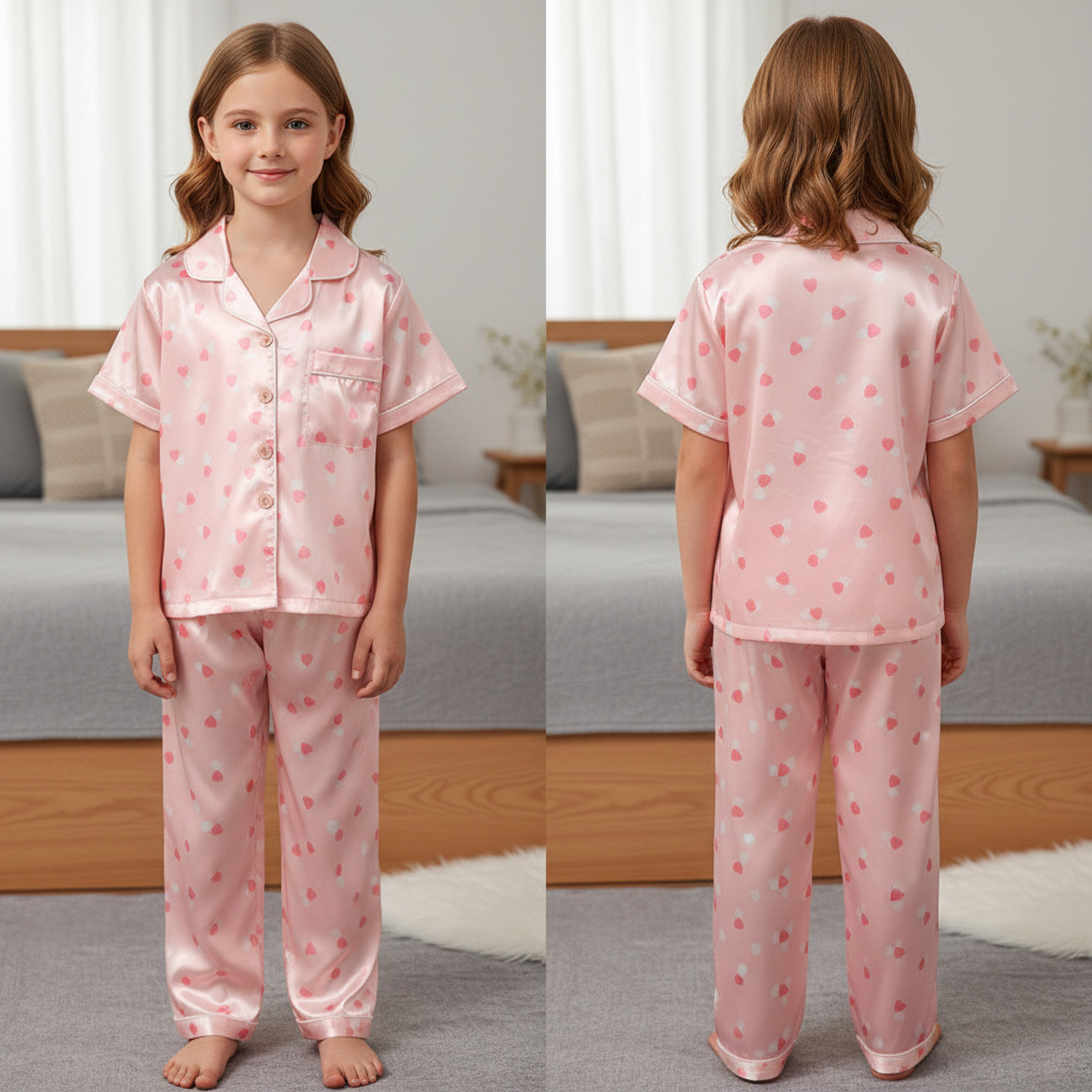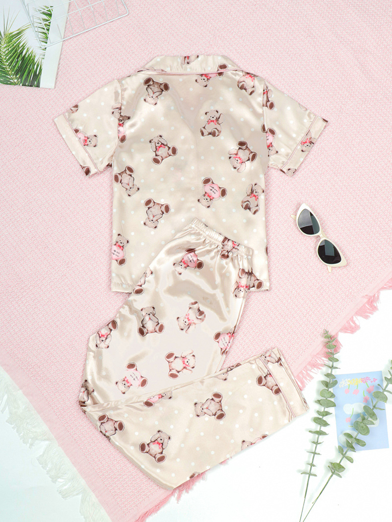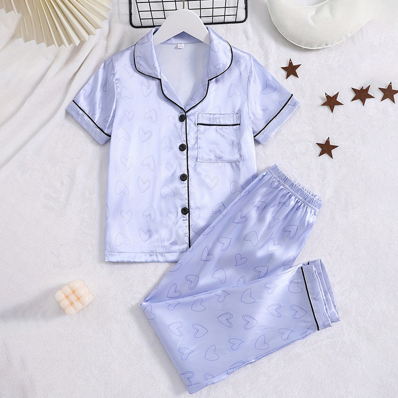 국경 간 대외 무역 새로운 유럽과 미국 여아 잠옷 달콤하고 사랑스러운 인쇄 어린이 정어리 모조 실크 캐주얼 가정복