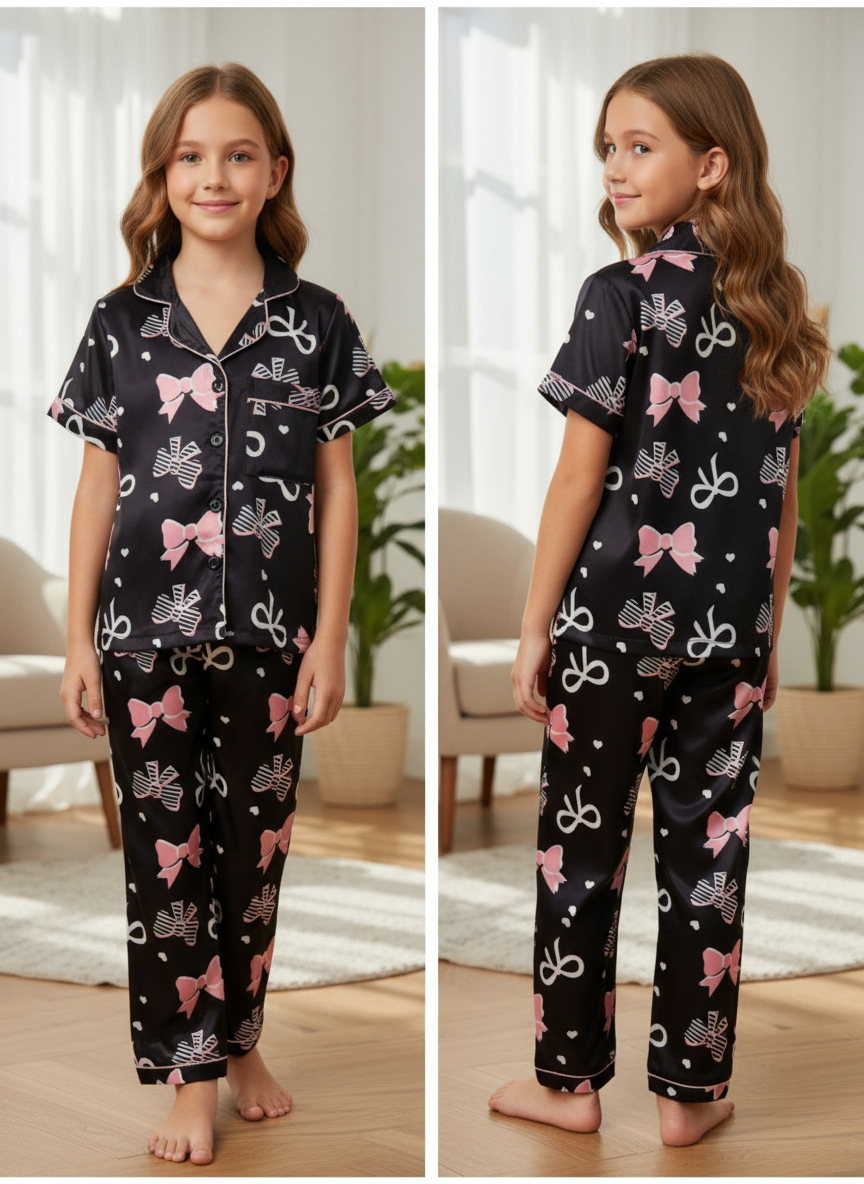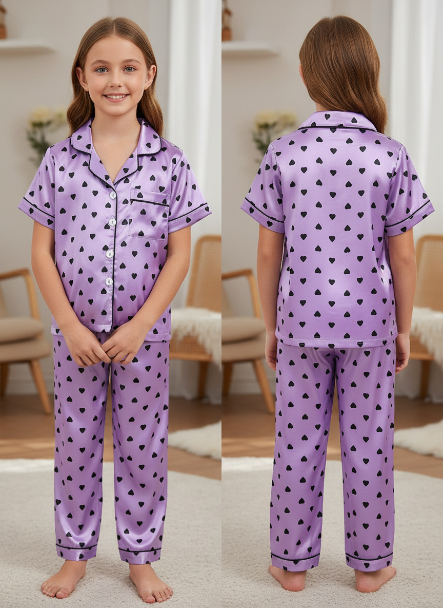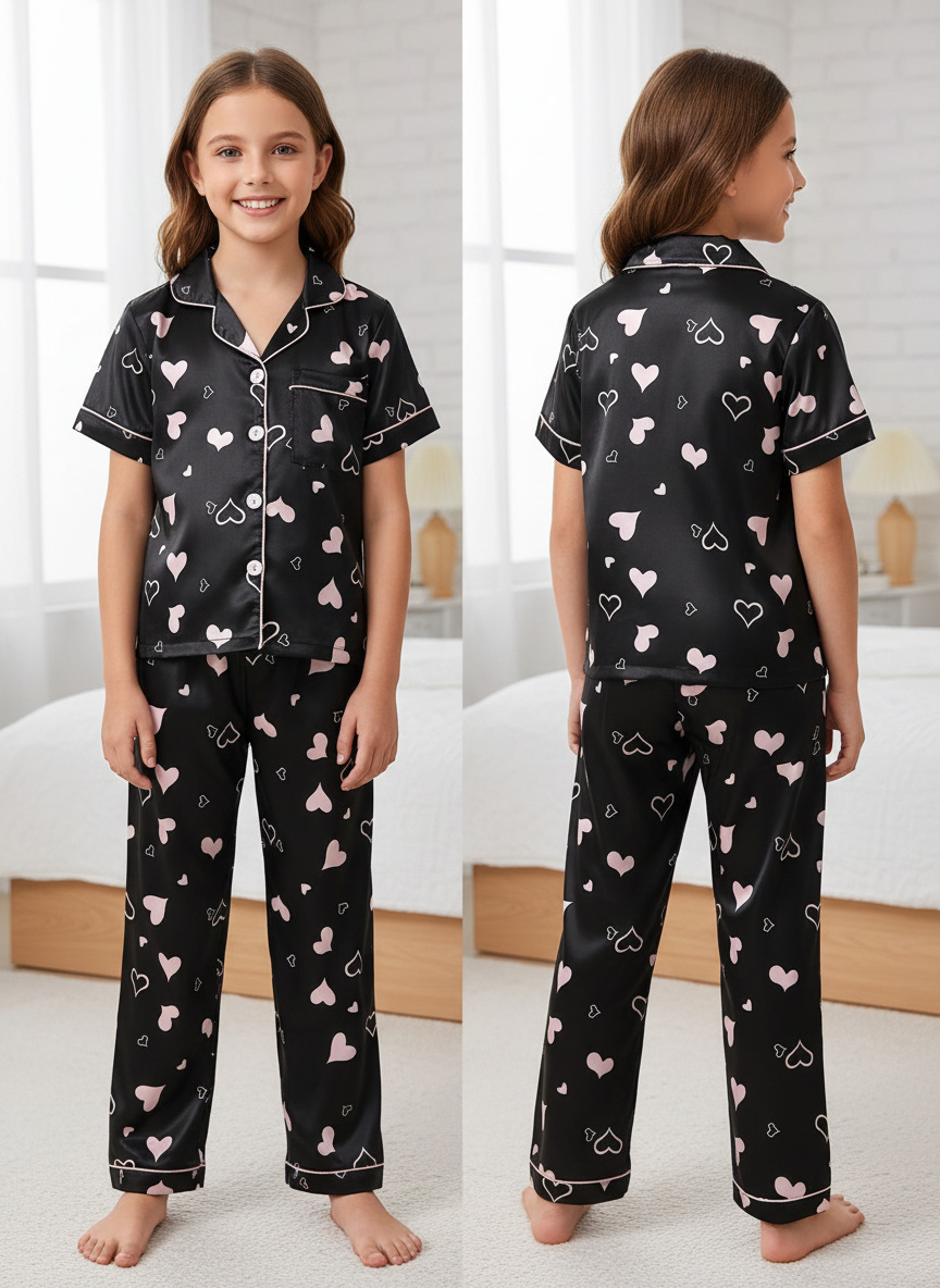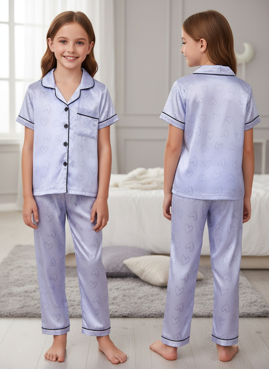 국경 간 대외 무역 새로운 유럽과 미국 여아 잠옷 달콤하고 사랑스러운 인쇄 어린이 정어리 모조 실크 캐주얼 가정복