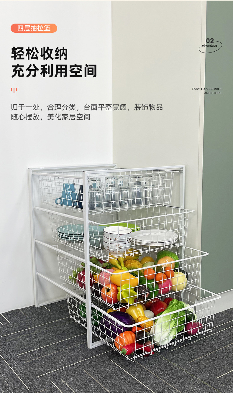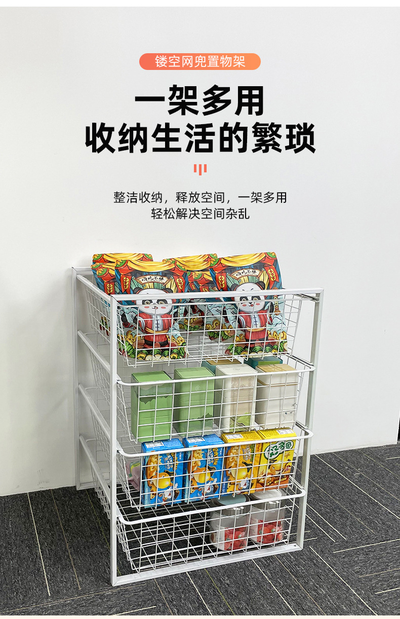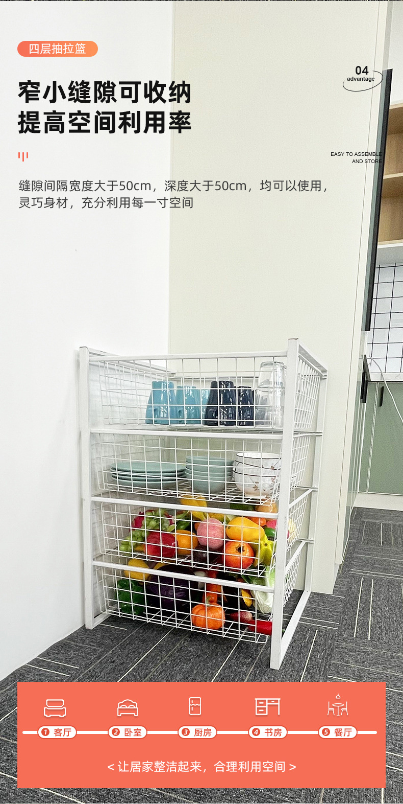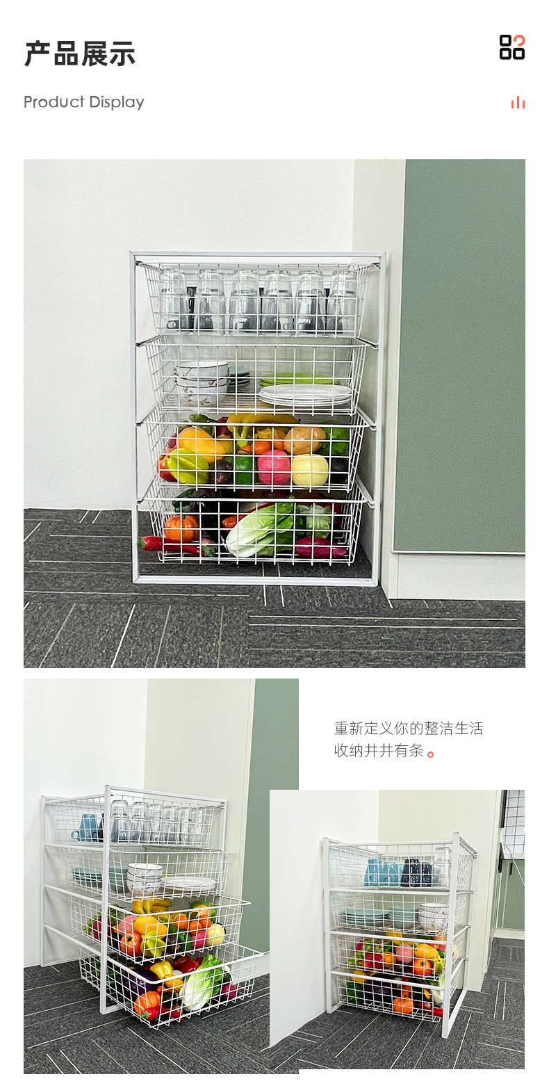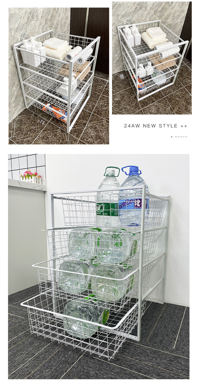 금속 스토리지 랙 서랍 유형 당겨 바구니 홈 침실 주방 기숙사 스토리지 랙 바닥에 서있는 계층화 된 메쉬 바구니 스토리지 바구니