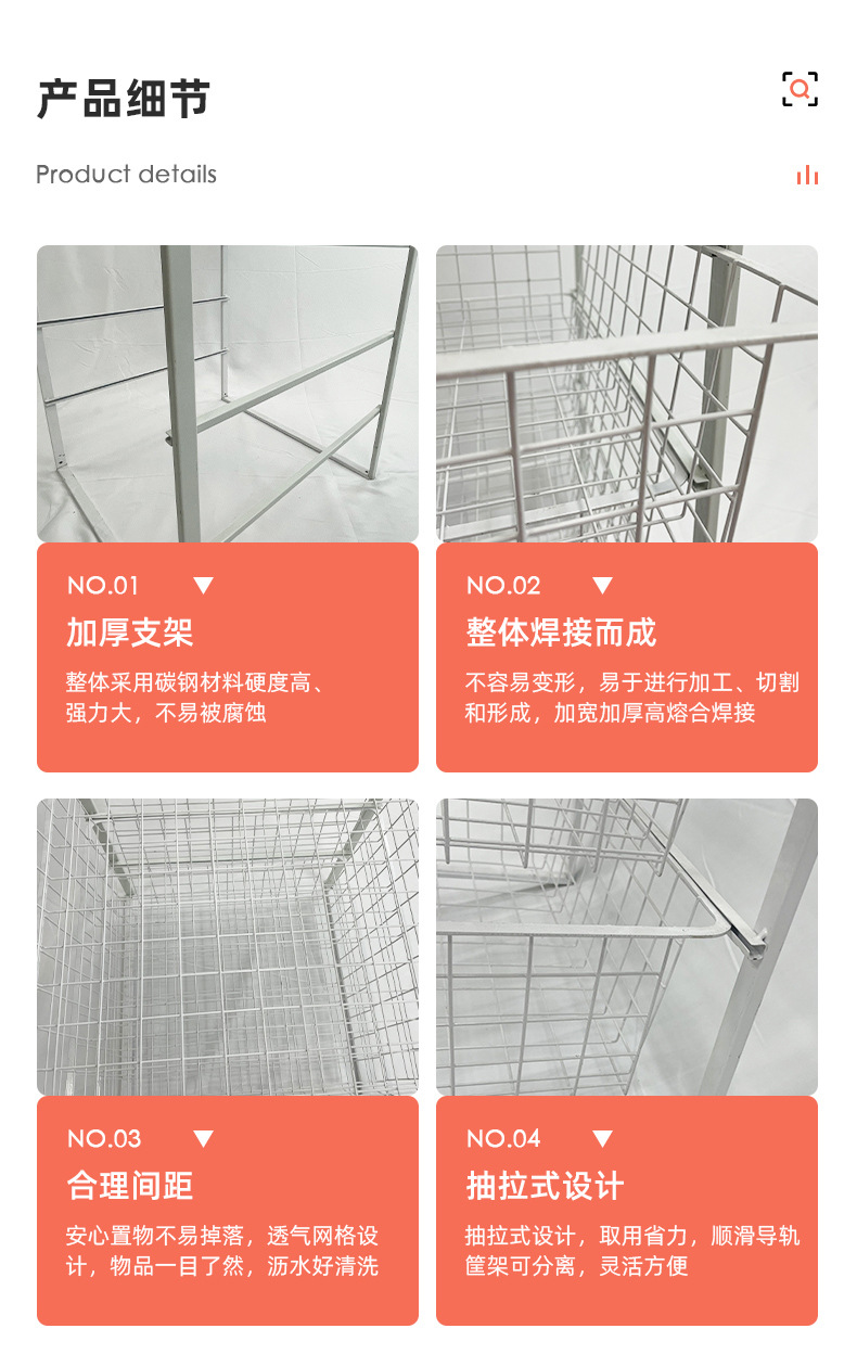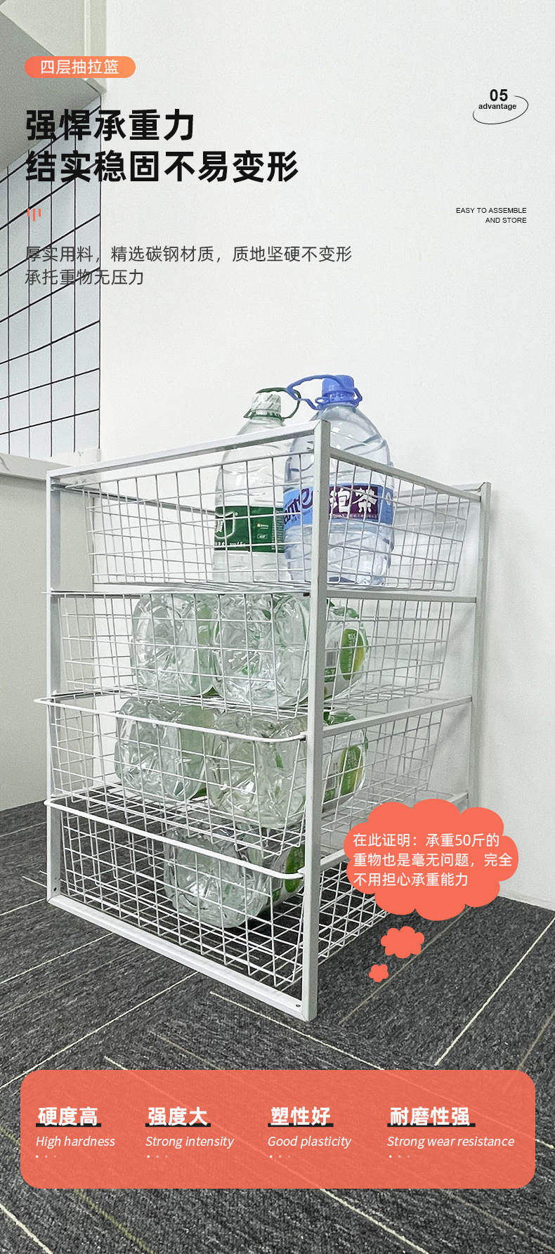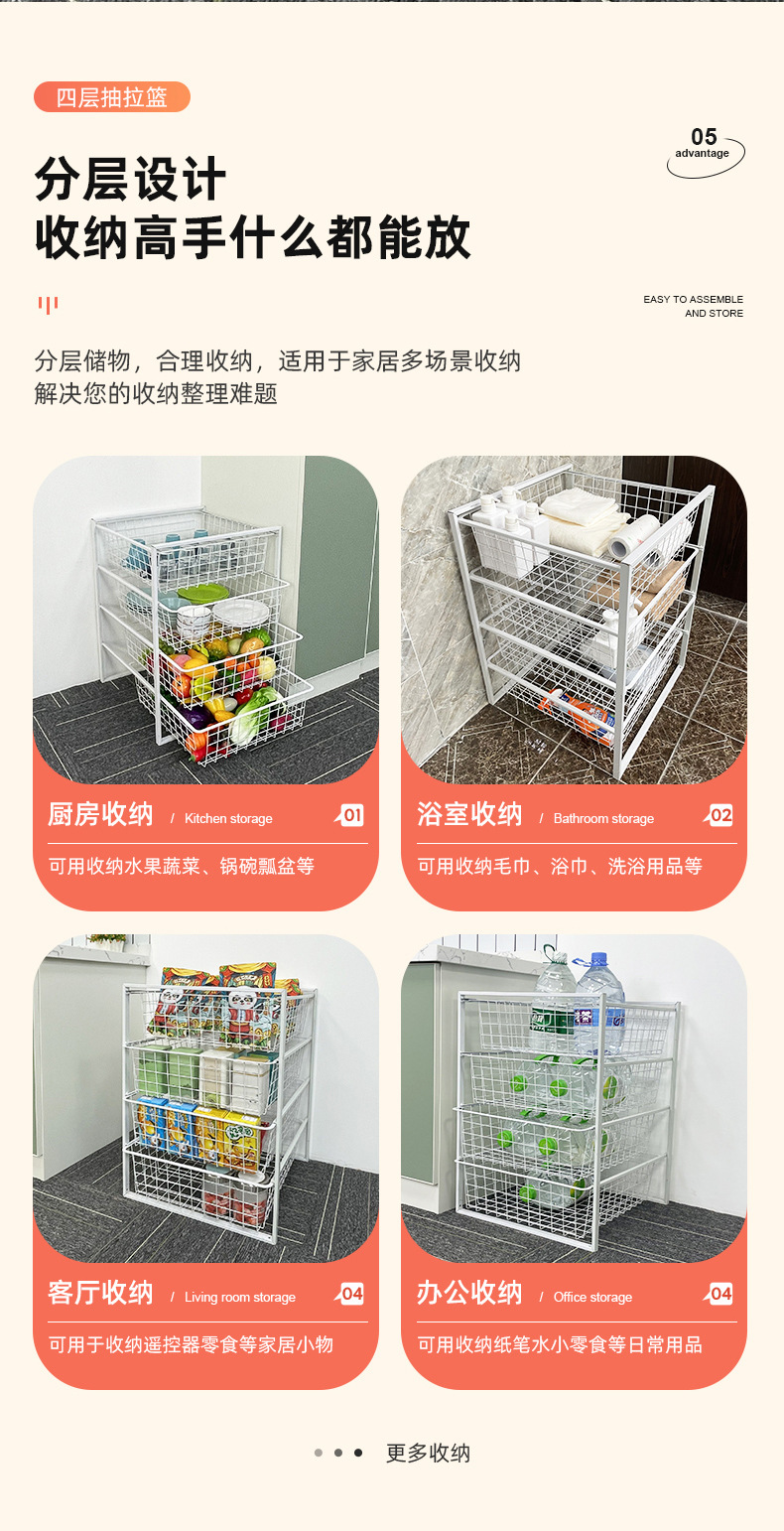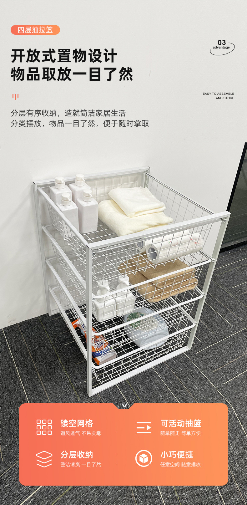 금속 스토리지 랙 서랍 유형 당겨 바구니 홈 침실 주방 기숙사 스토리지 랙 바닥에 서있는 계층화 된 메쉬 바구니 스토리지 바구니