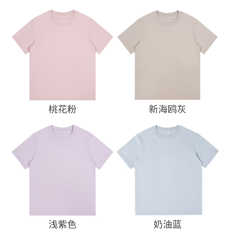 230g 순면 캐주얼 흰색 바닥 셔츠 남성용 느슨한 봄과 여름 조수 브랜드 남성용 둥근 목 반팔 티셔츠 여성용 옷스토어 가기