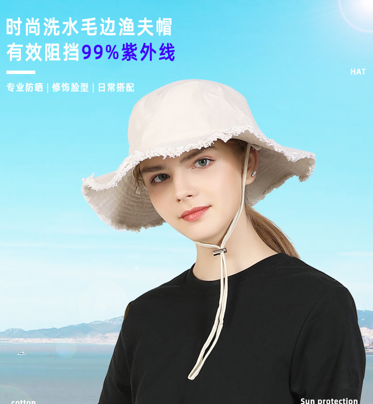 어부 모자 아이들의 새로운 간단한 씻은 얼굴 그늘 작은 술 햇살 큰 Eave 모자 일본 올 매치 와이드 Eave 모자 국경스토어 가기