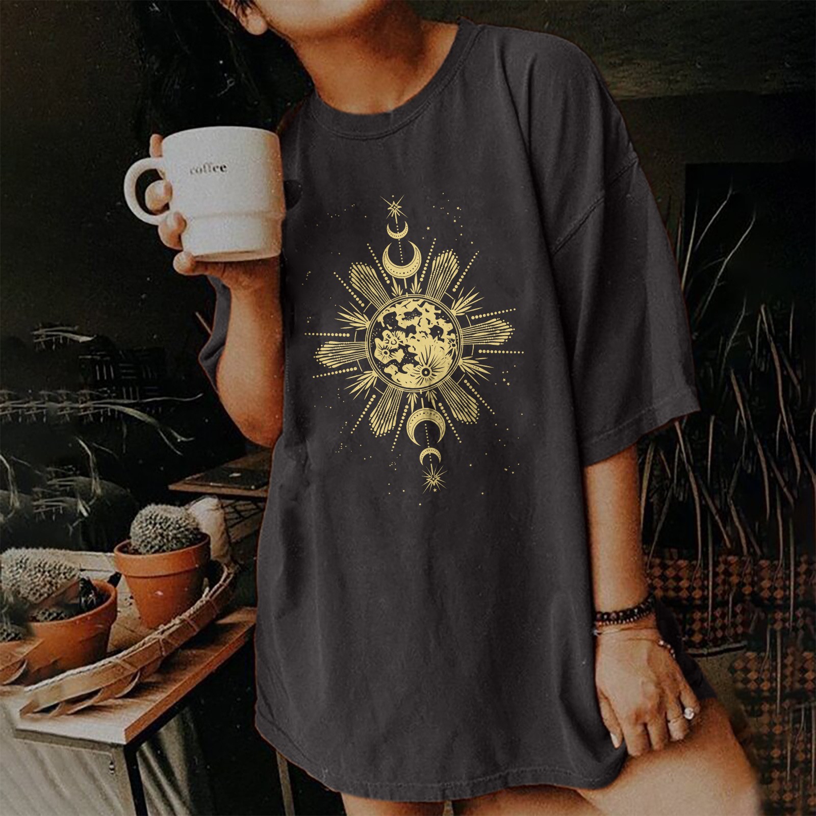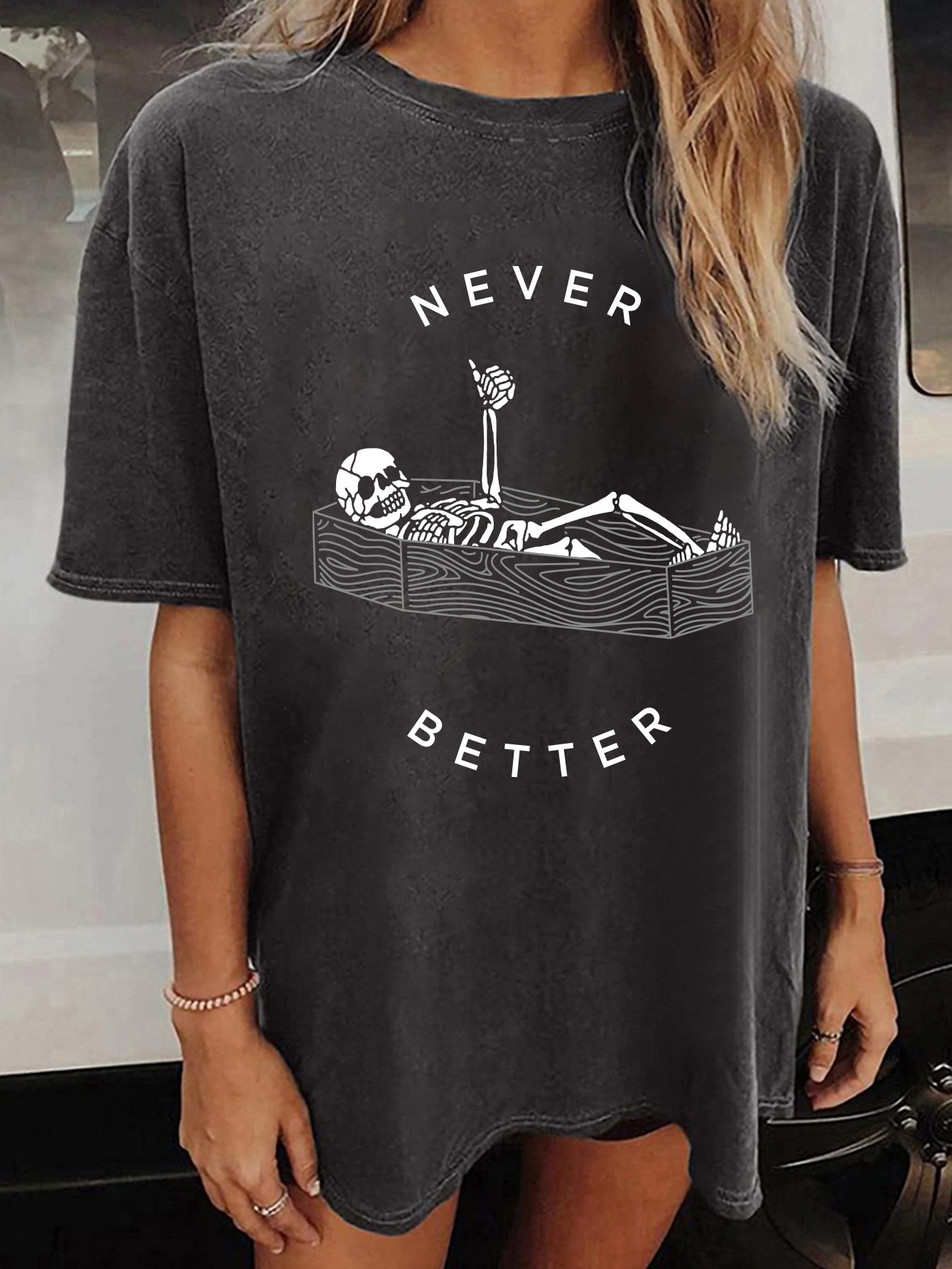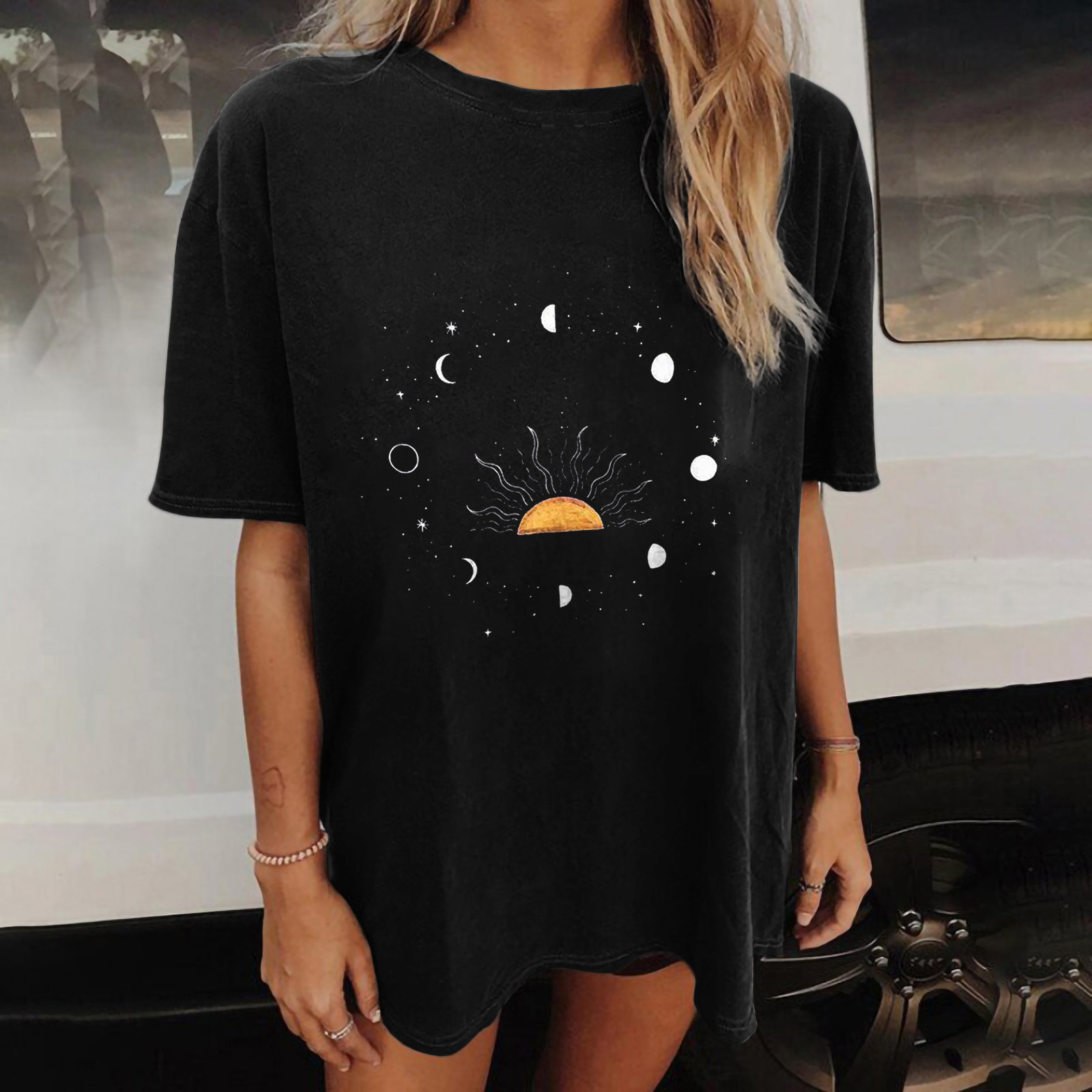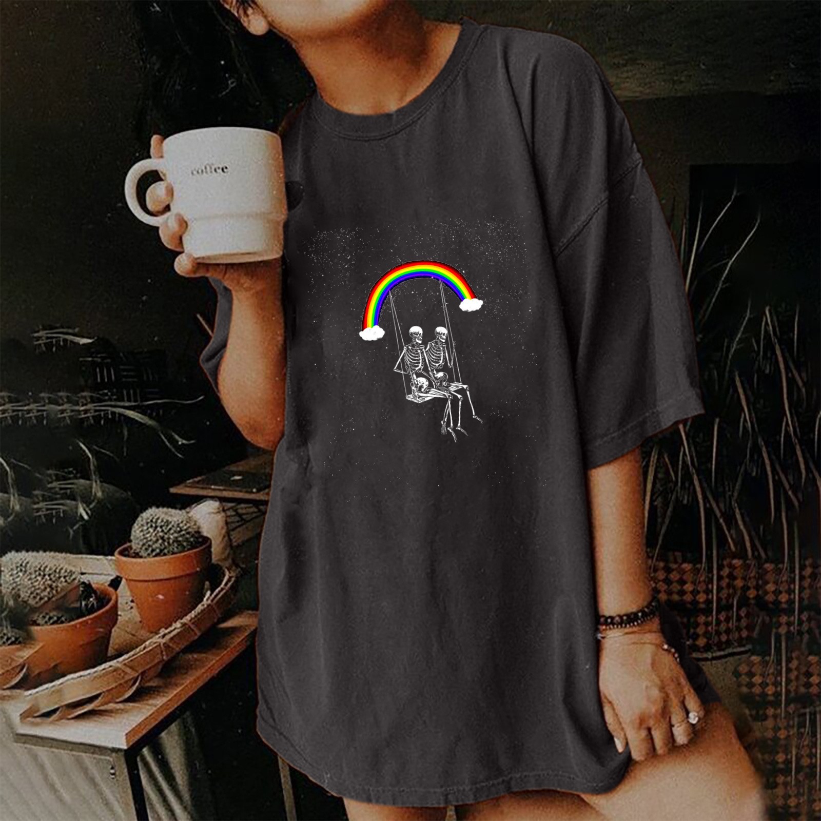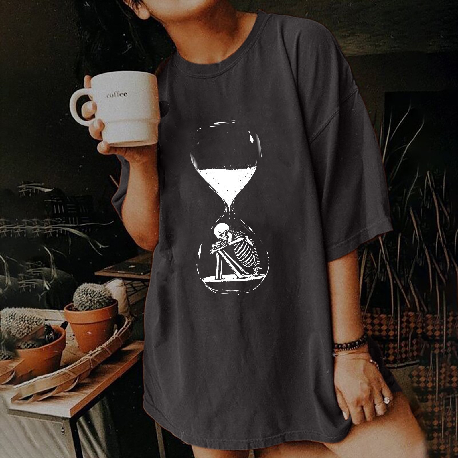 반팔 티셔츠 여성용 여름 어깨 반팔 여성용 유럽 사이즈 레트로 프린트 티셔츠 유럽 사이즈 해골 문 여성 캐주얼 티셔츠스토어 가기