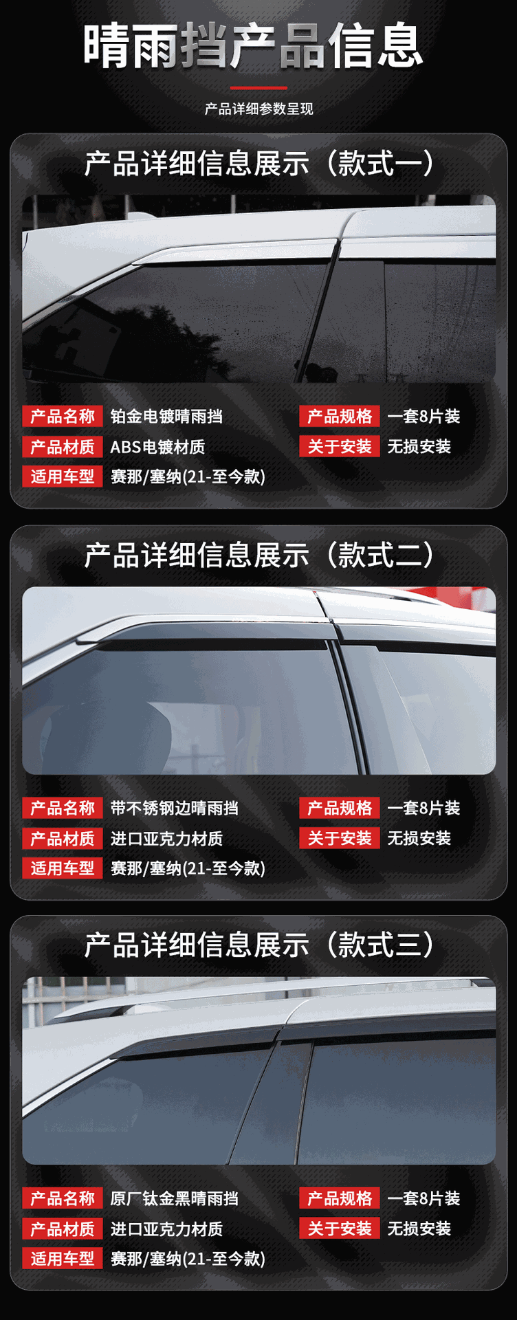 Texinrui는 Saina 차창 비 눈썹 레인 실드 자동차 용품을 차단하는 렌즈 스트리머 자갈로 개조된 Saina에 적합합니다