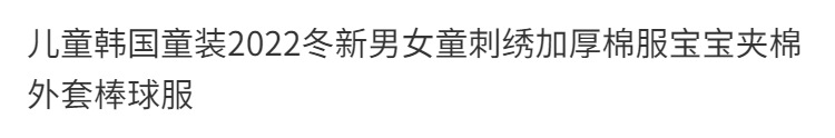 어린이 한국 아동복 2022 겨울 새로운 소년 소녀 자수 패딩 코튼 패딩 재킷 아기면 코트 야구 세트