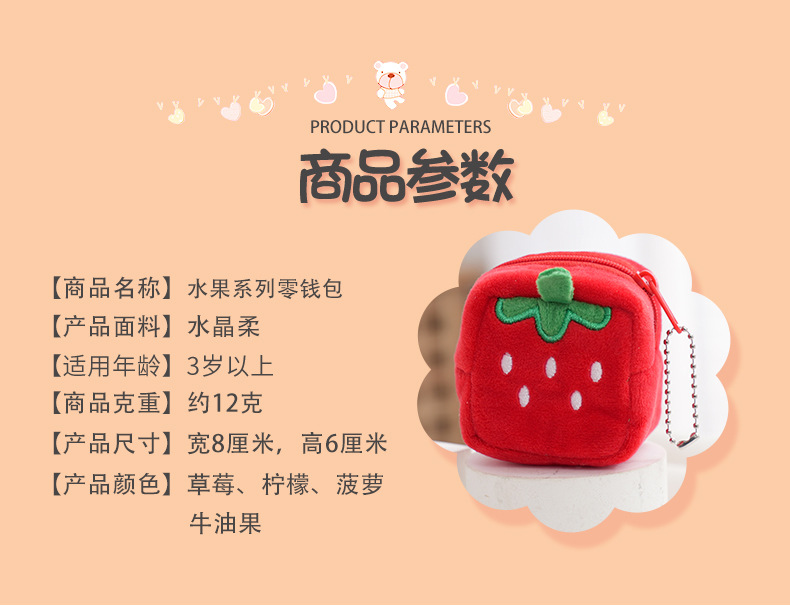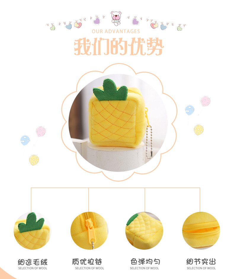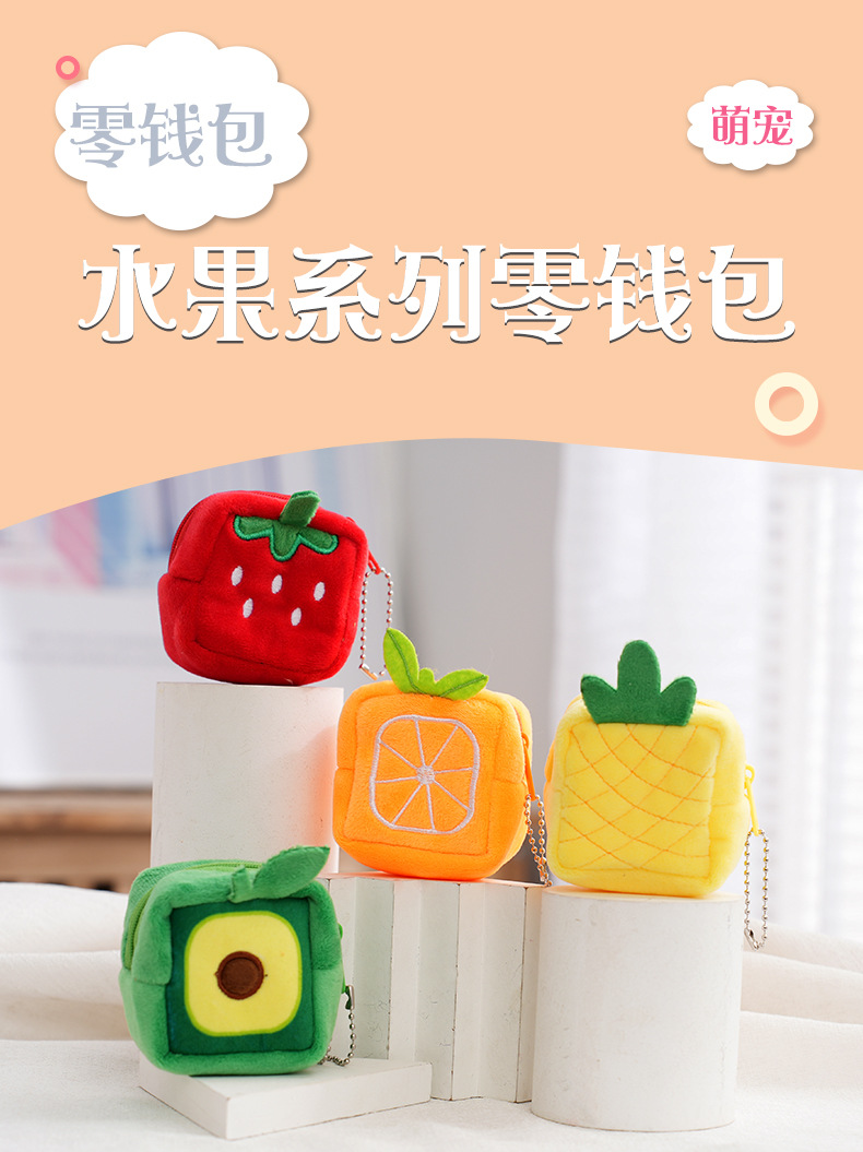 과일 시리즈 봉제 동전 지갑 배낭 작은 펜던트 아오카도 이어폰 가방 키즈 파인애플 가방 저장 가방