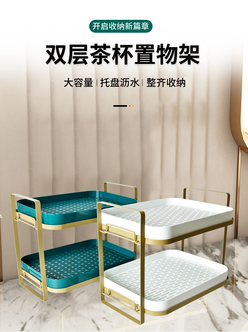 찻잔 및 주전자 보관 랙용 2 중 찻잔 보관 랙 트레이 가정용 보관 랙이있는 2 중 배수스토어 가기