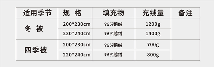 填充物:95%鹅绒