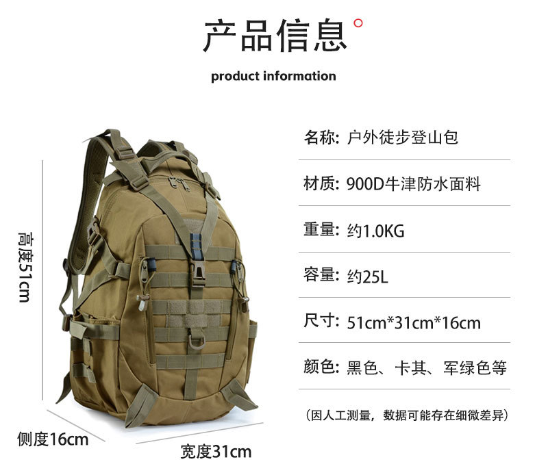 다기능 야외 등산 배낭 대용량 생존 오프로드 하이킹 배낭 여행 스포츠 피트니스 전술 가방
