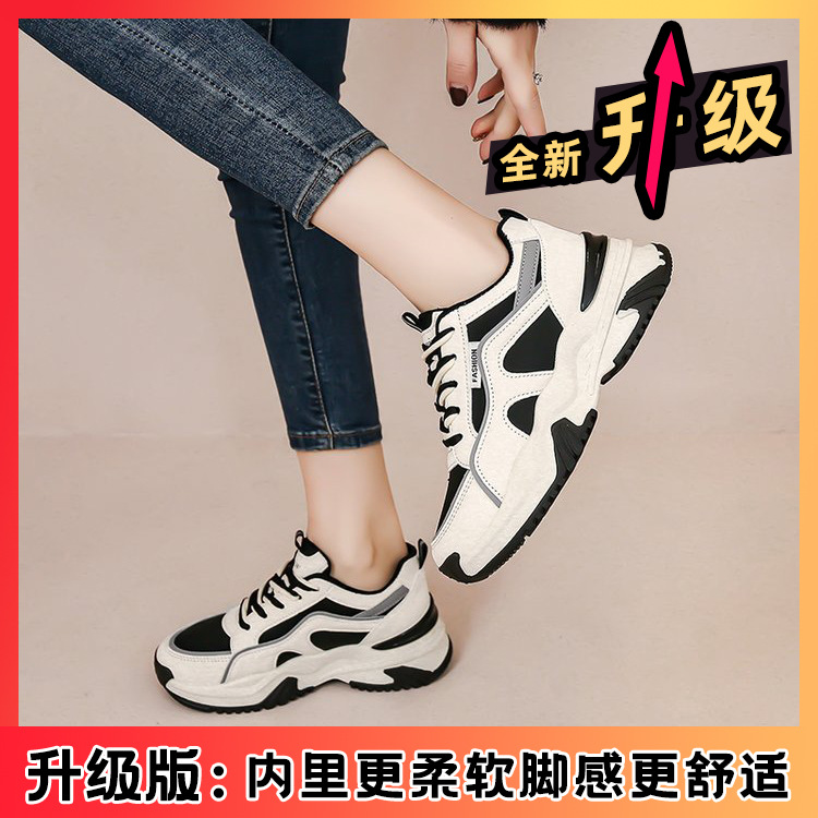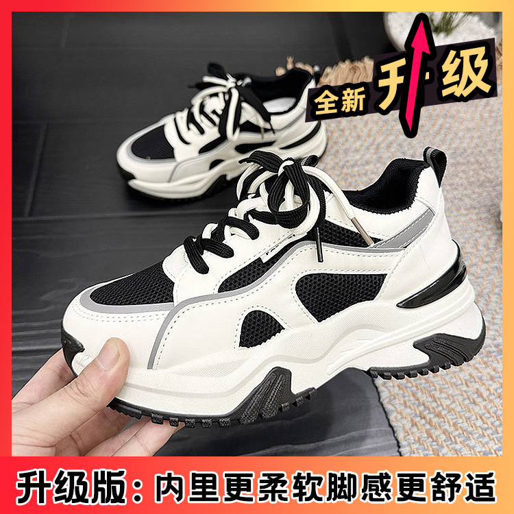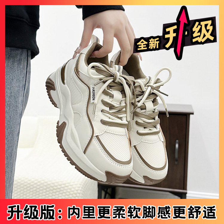 2025년 한국 스타일 여성용 러버솔 운동화, 발을 작아 보이게 하는 캐주얼 여성 신발, 통기성과 키높이 기능이 있는 두꺼운 밑창 운동화스토어 가기