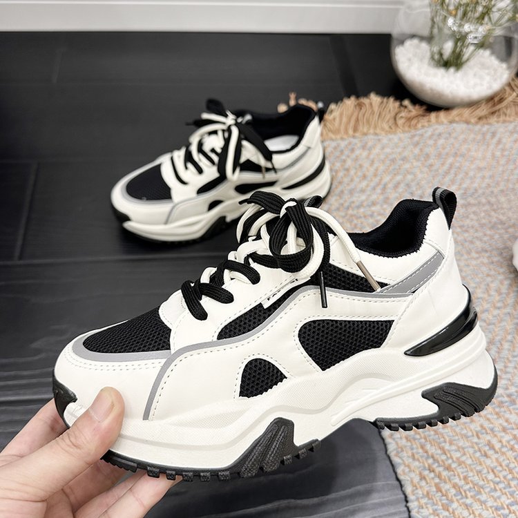 2025년 한국 스타일 여성용 러버솔 운동화, 발을 작아 보이게 하는 캐주얼 여성 신발, 통기성과 키높이 기능이 있는 두꺼운 밑창 운동화