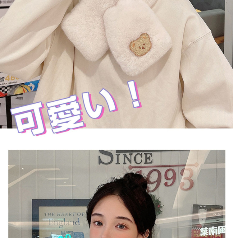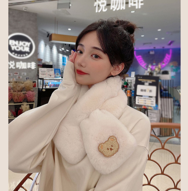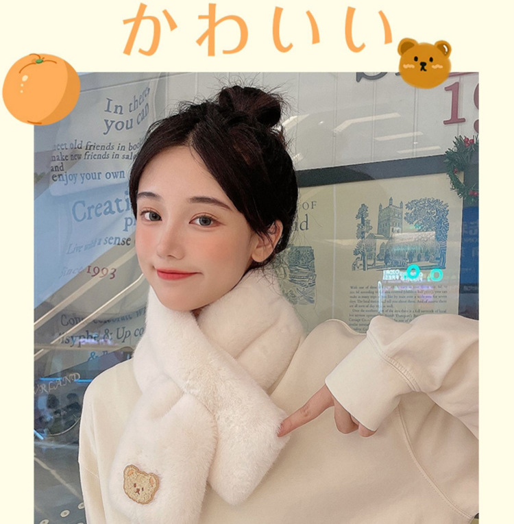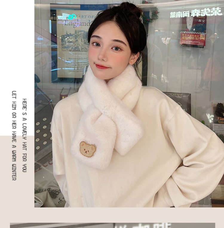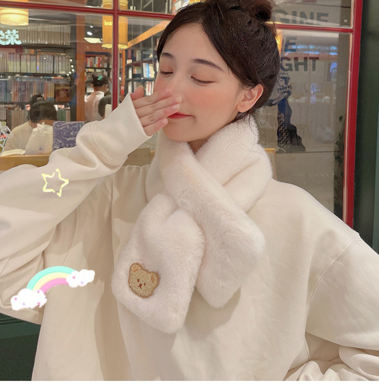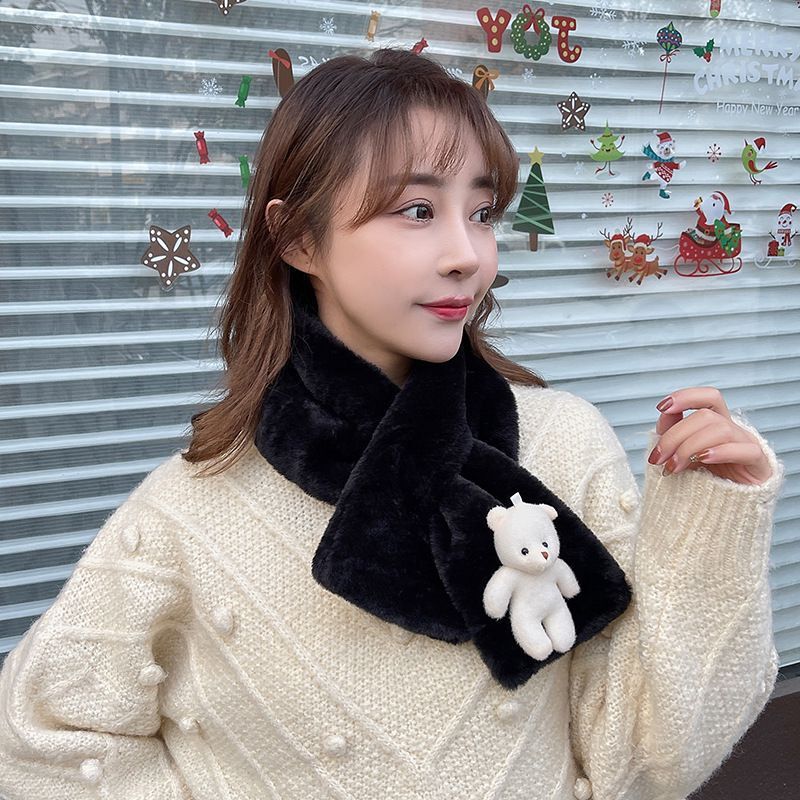 가을 겨울 여성용 스카프 두껍고 따뜻한 한국어 버전 귀여운 학생 다용도 한국 공주 곰 크로스 플러시 스카프스토어 가기