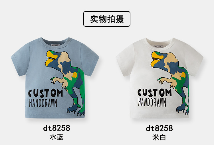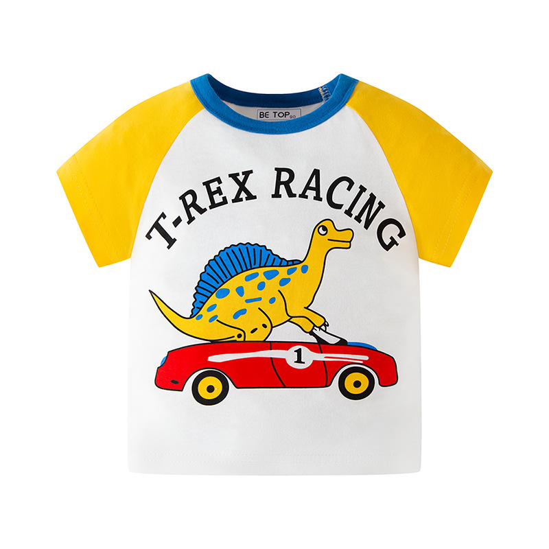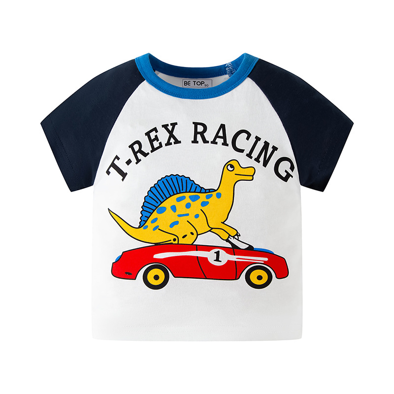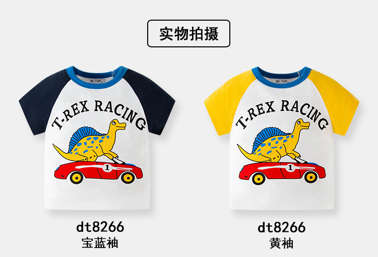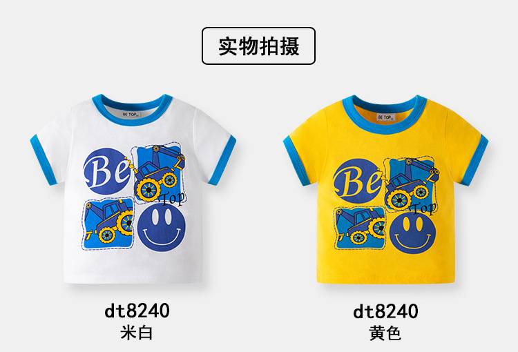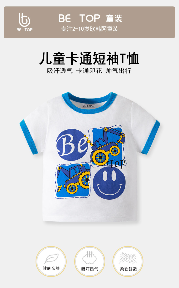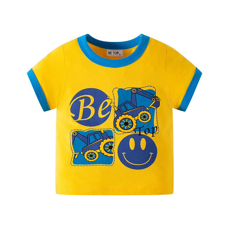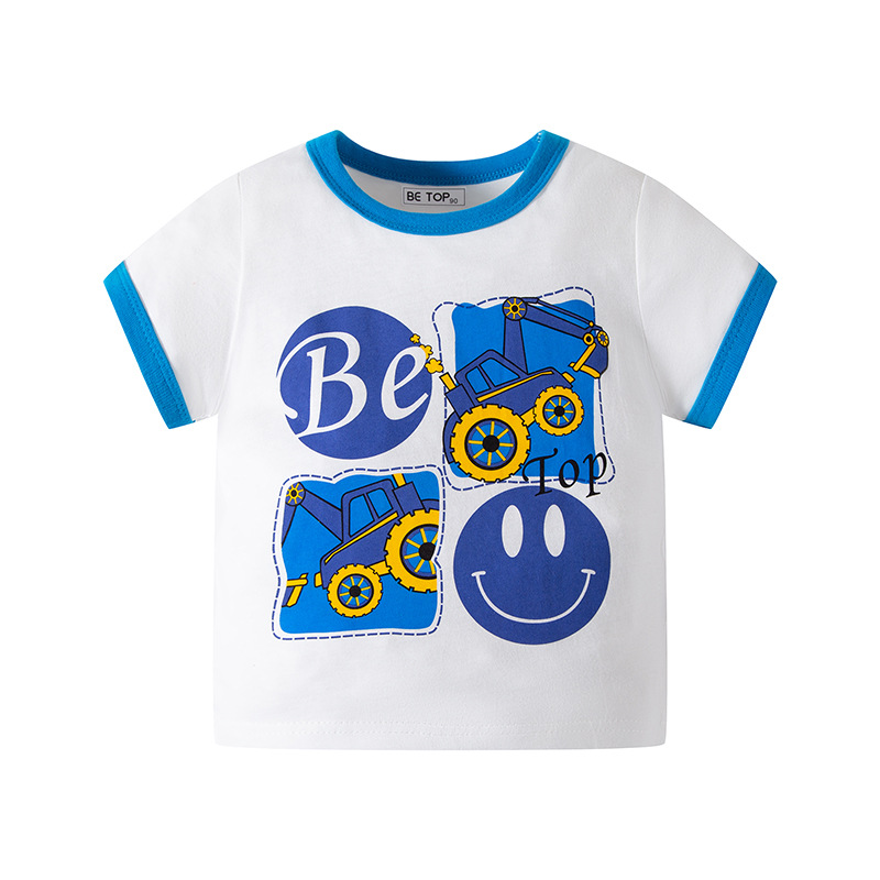 2026년 신상 여름 아동 반팔 티셔츠 트렌디 브랜드 남아용 순면 라운드넥 자동차 프린트 반팔 티셔츠 도매스토어 가기