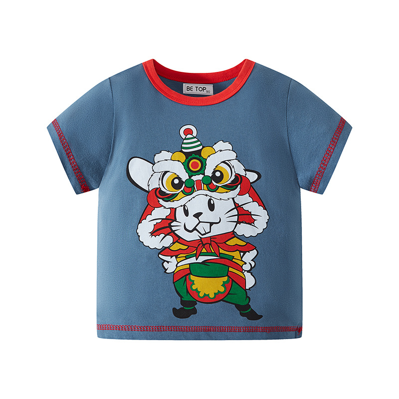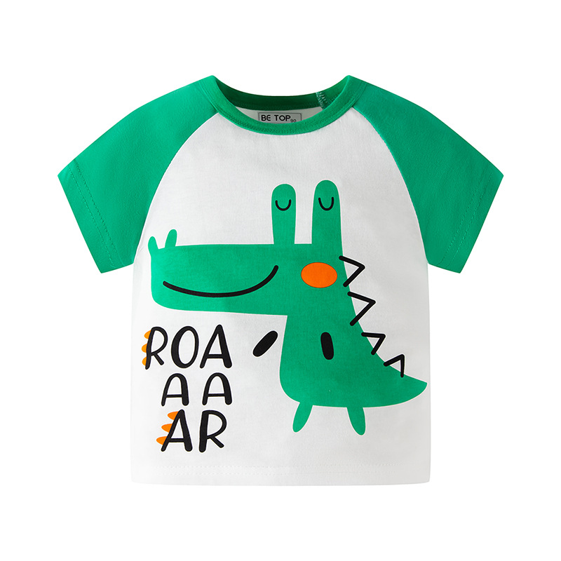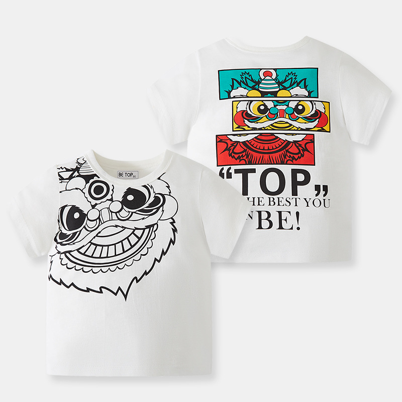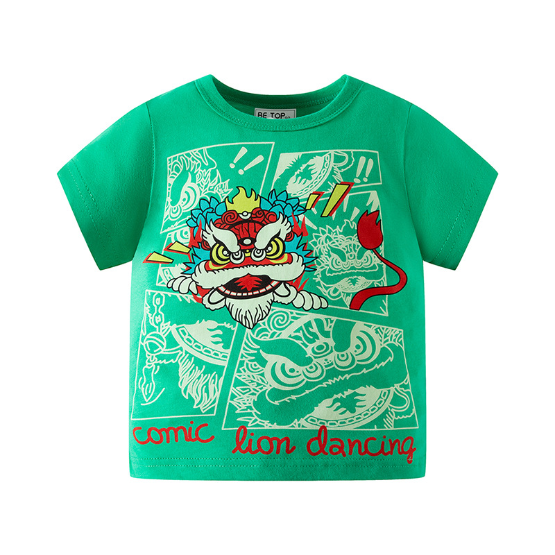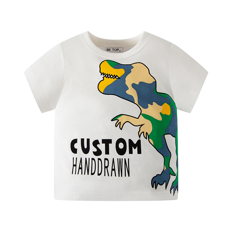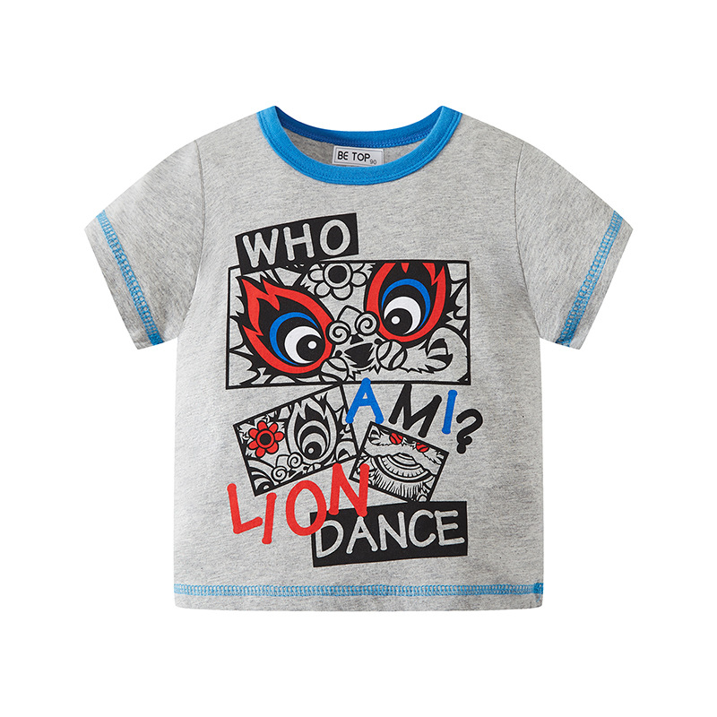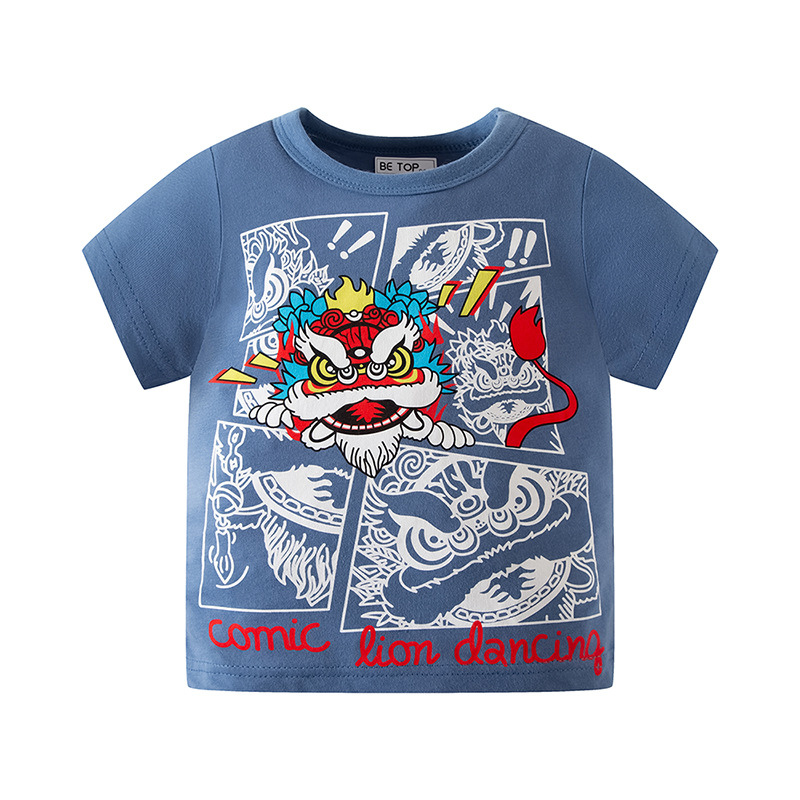 2026년 신상 여름 아동 반팔 티셔츠 트렌디 브랜드 남아용 순면 라운드넥 자동차 프린트 반팔 티셔츠 도매스토어 가기