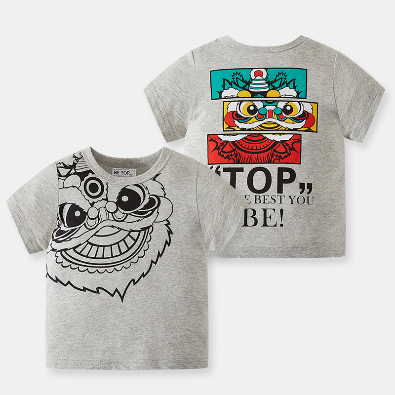 2026년 신상 여름 아동 반팔 티셔츠 트렌디 브랜드 남아용 순면 라운드넥 자동차 프린트 반팔 티셔츠 도매