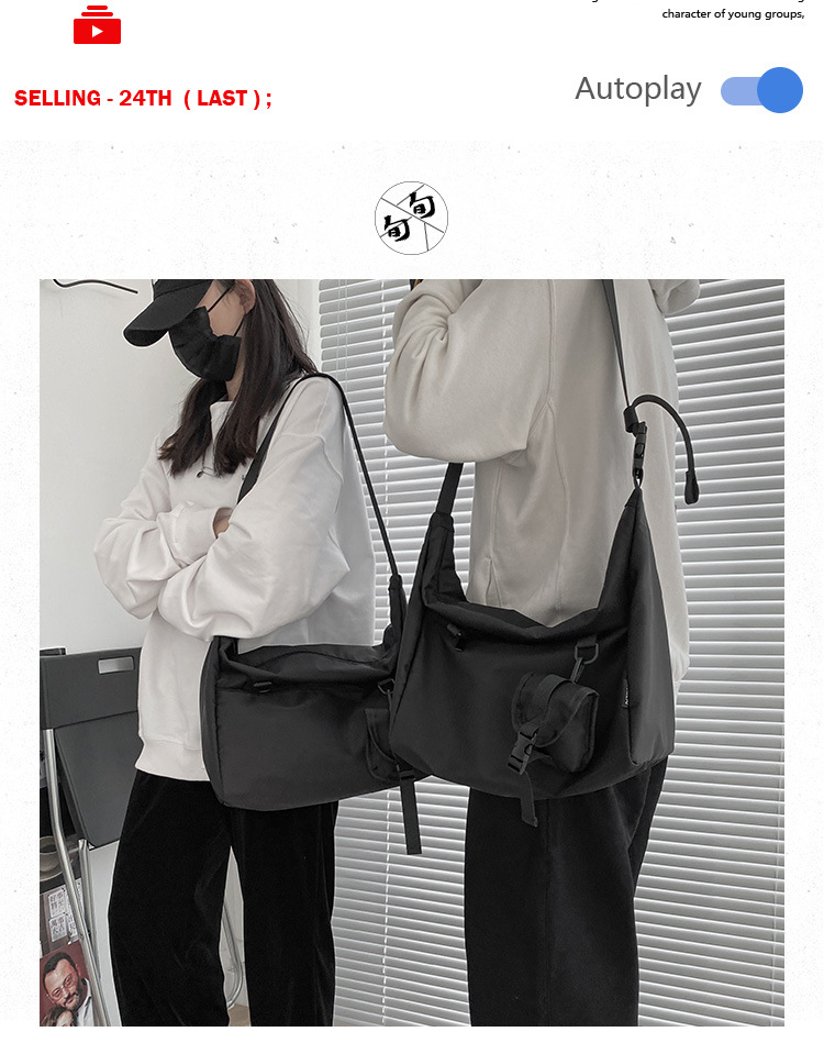 In 다크 패션 크로스 바디 백 남성용 대용량 스포츠 숄더백 여성 캐주얼 가방 학생 책가방 홍콩 스타일 툴링 백스토어 가기