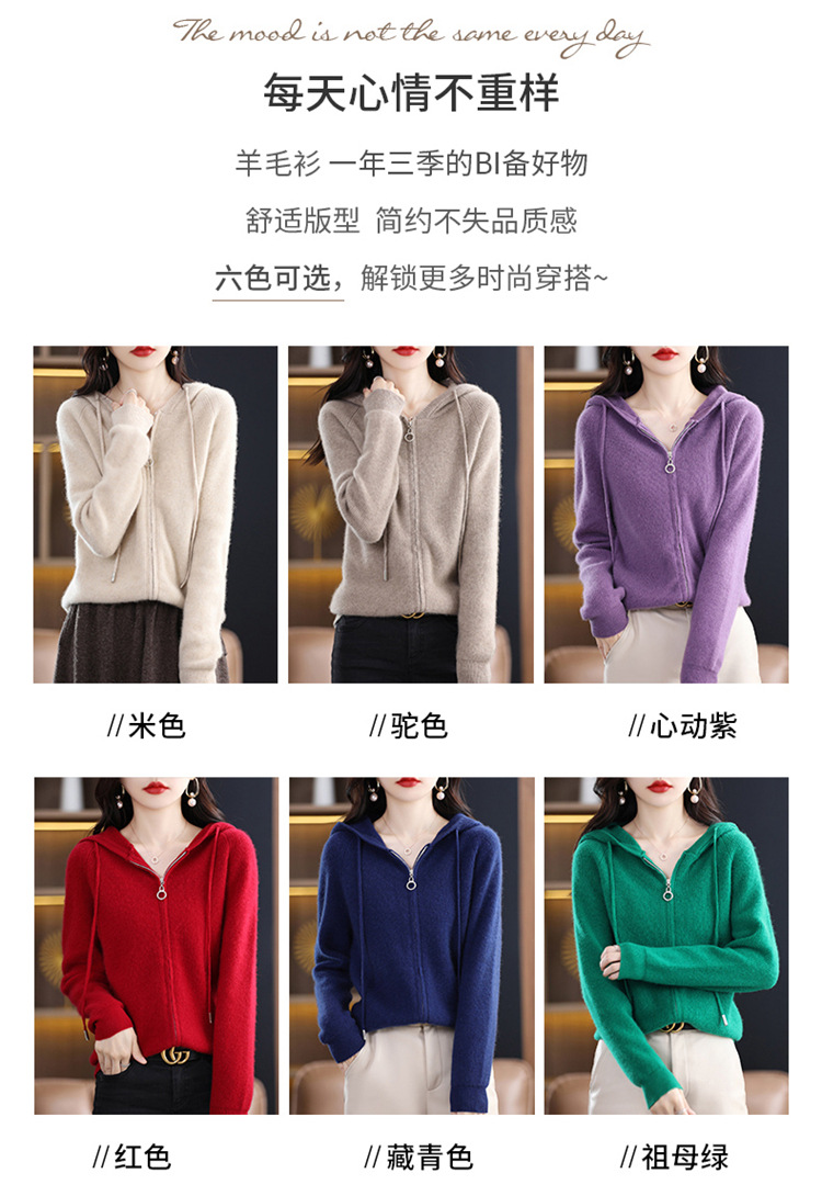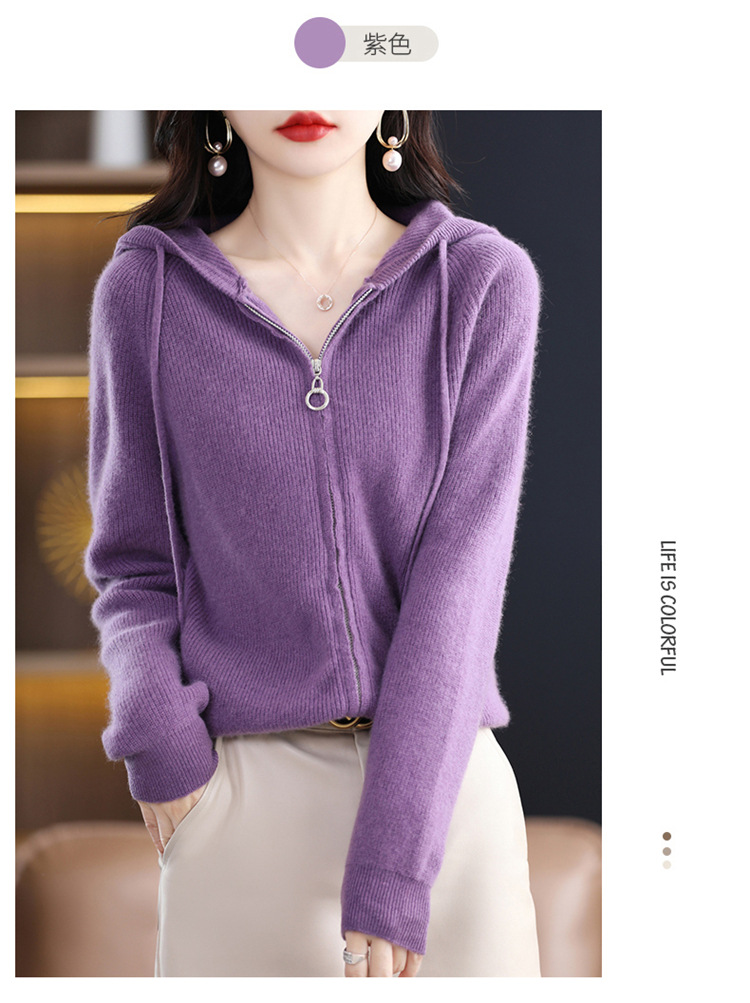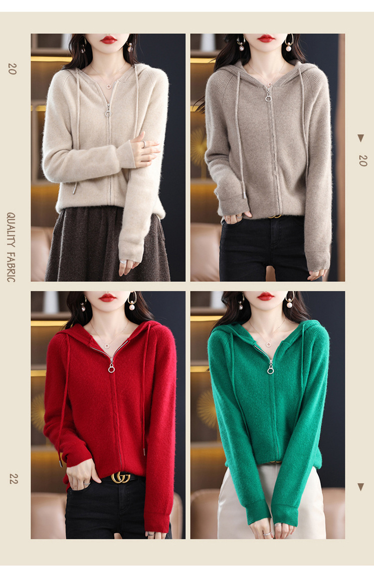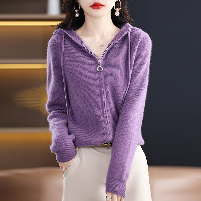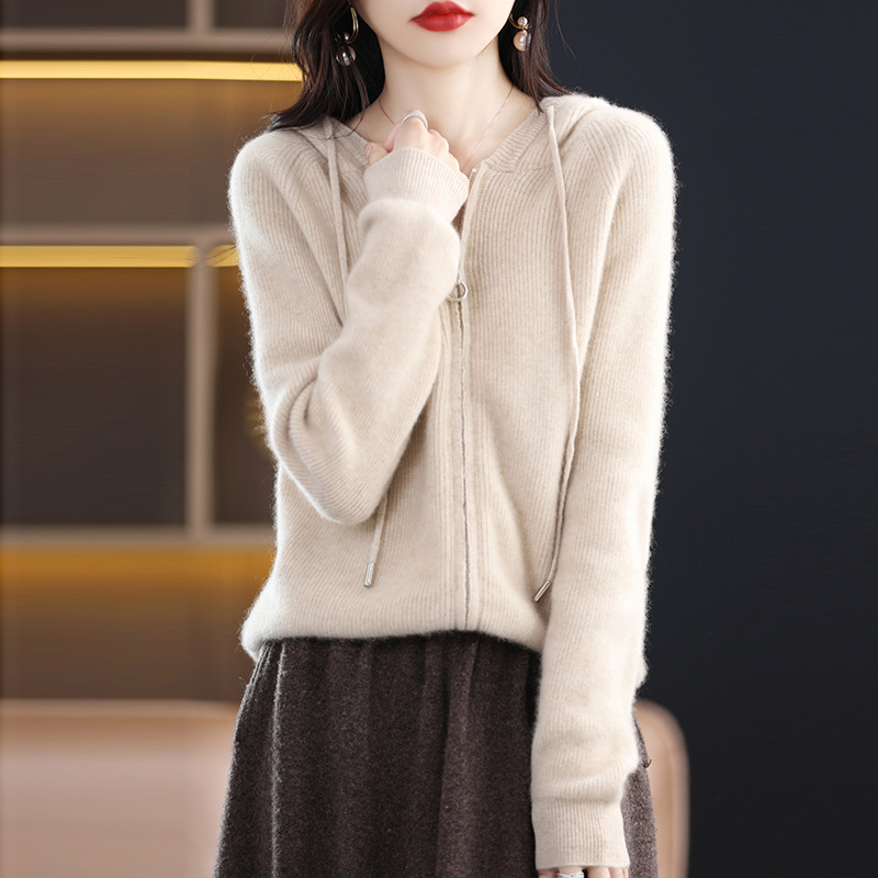 후드 스웨터 여성 2023 봄 한국 순수 울 지퍼 카디건 느슨한 캐시미어 스웨터 두꺼운 니트 후드 도매