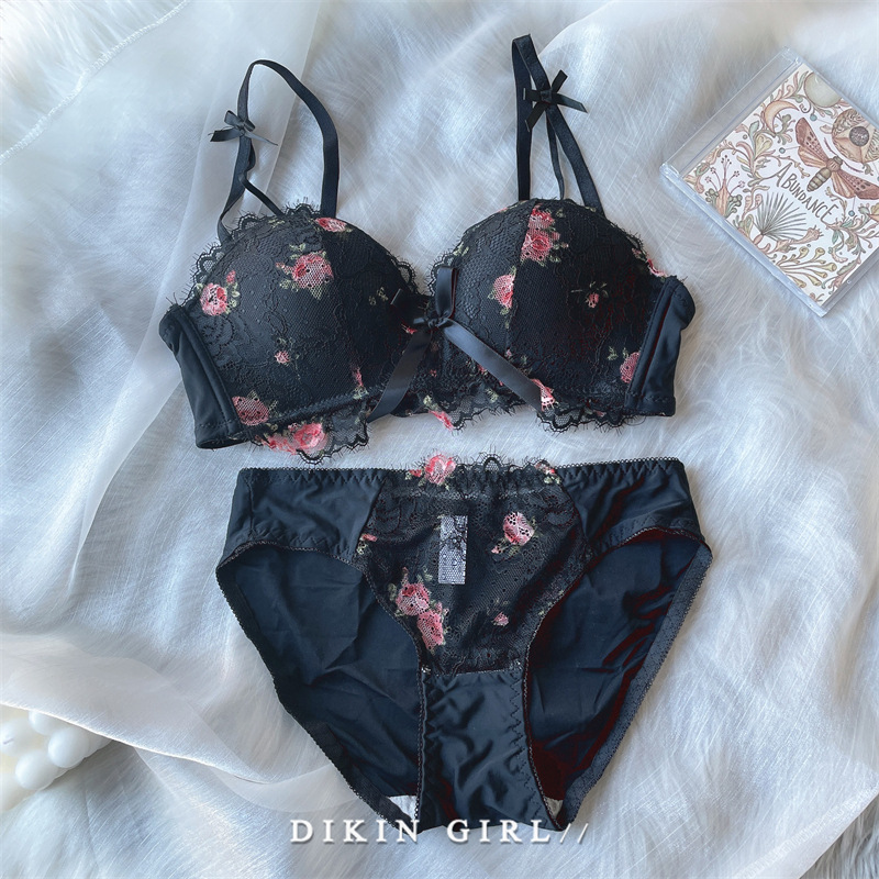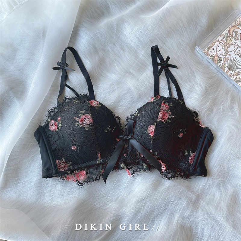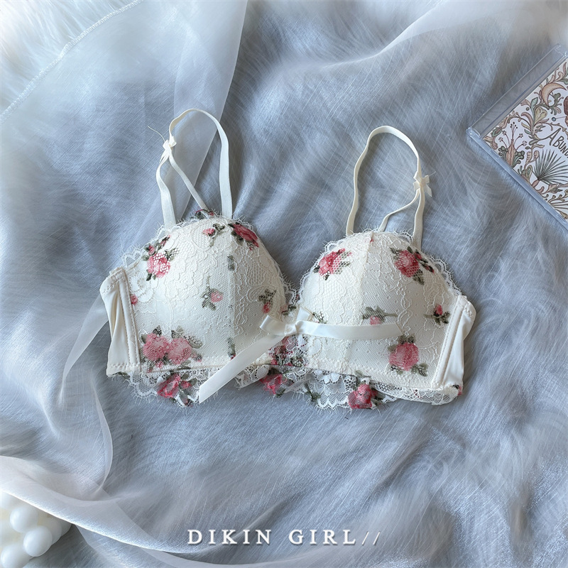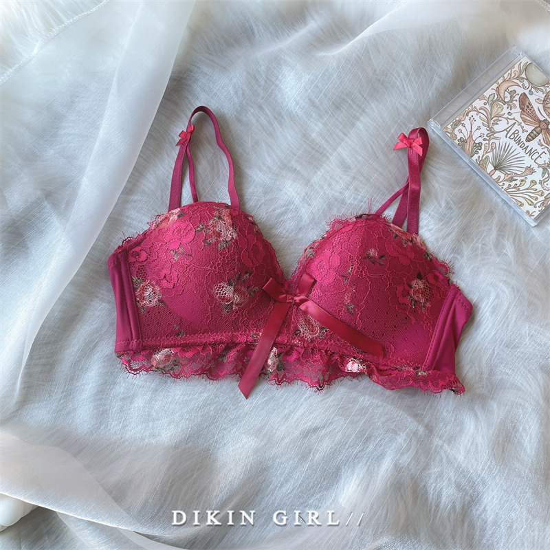 작은 가슴 개더링 속옷 여성 강호 [레트로 유화 로즈] 조정 가능한 여성 섹시 브라