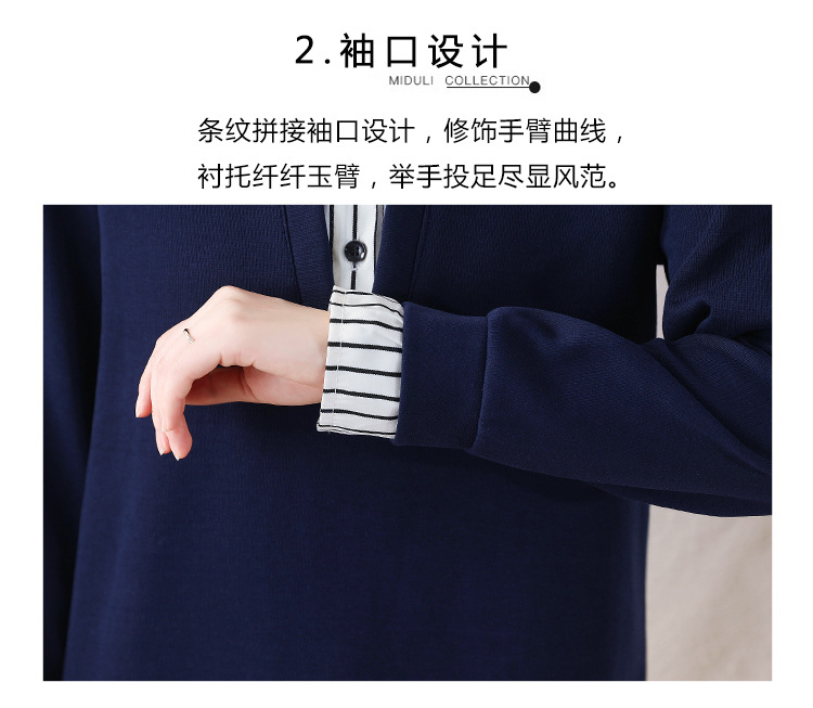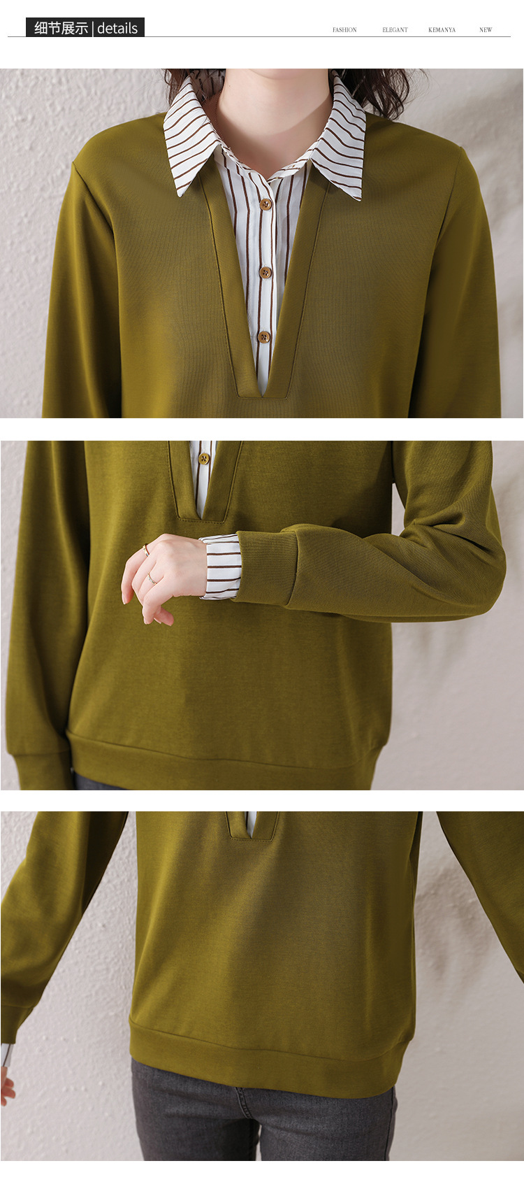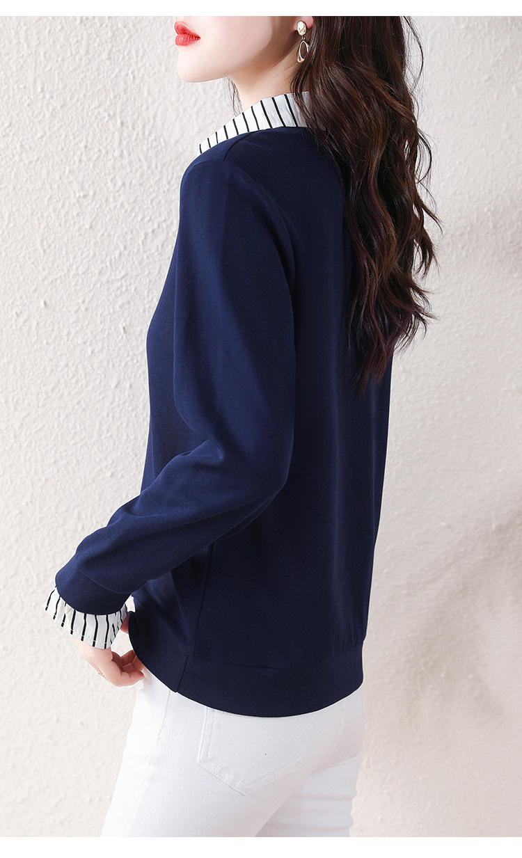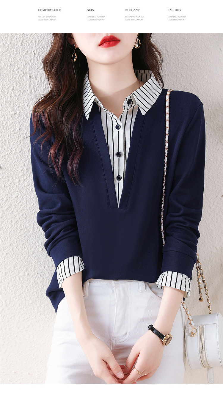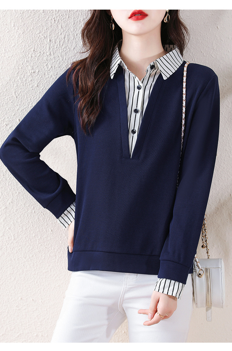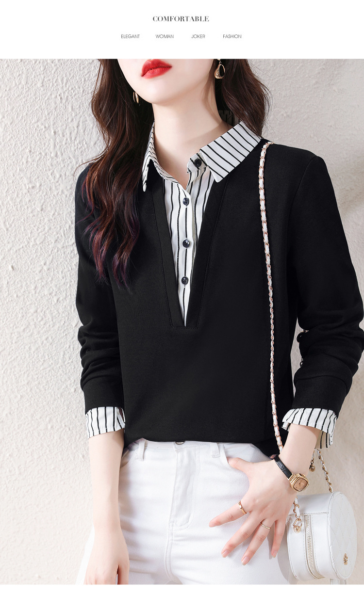 여성 옷깃 2023 새로운 가을 폴로 칼라 스트라이프 스티치 셔츠 가짜 투피스 긴 소매 스웨터 탑 패션스토어 가기