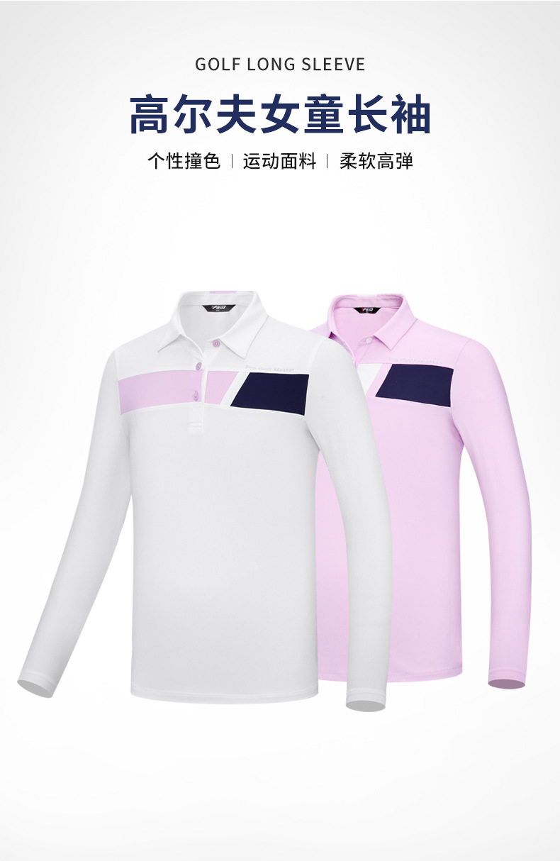 PGM 새로운 아동 골프 의류 여아 긴 소매 티셔츠 고탄력 피부 친화적 스포츠 패브릭 패션 모든 매치스토어 가기