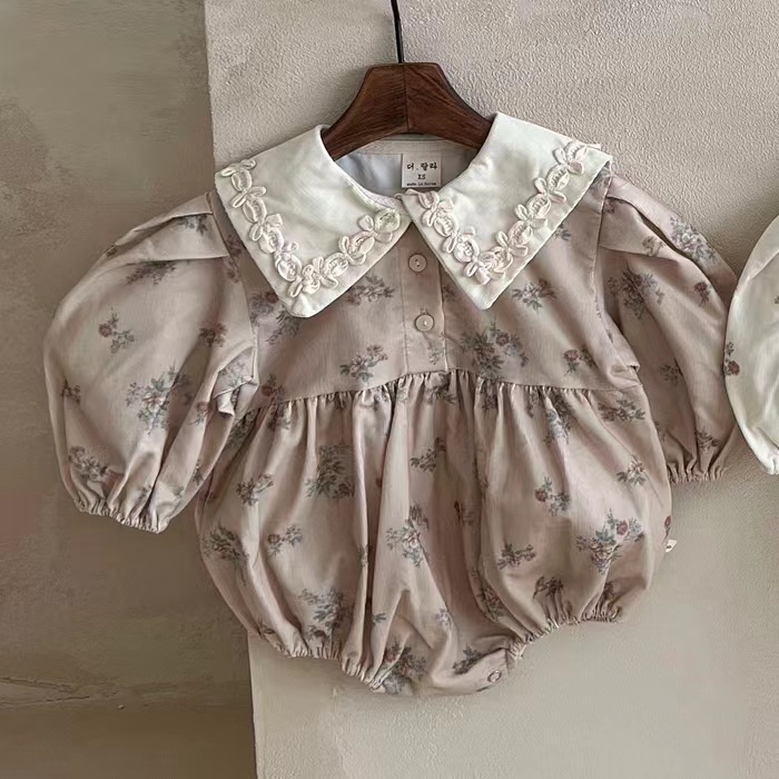 한국어 스타일 아동 의류 가을 스타일 아기 소녀 일본 꽃 공주 장난 꾸러기 어린이 인형 칼라 가방 방귀 점프 슈트