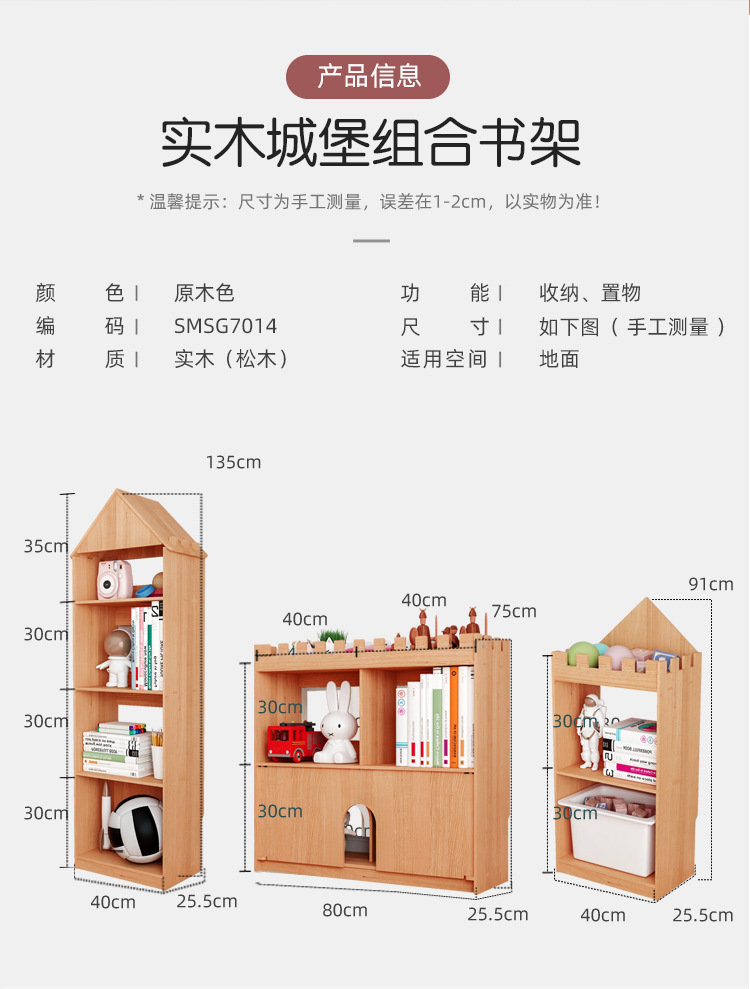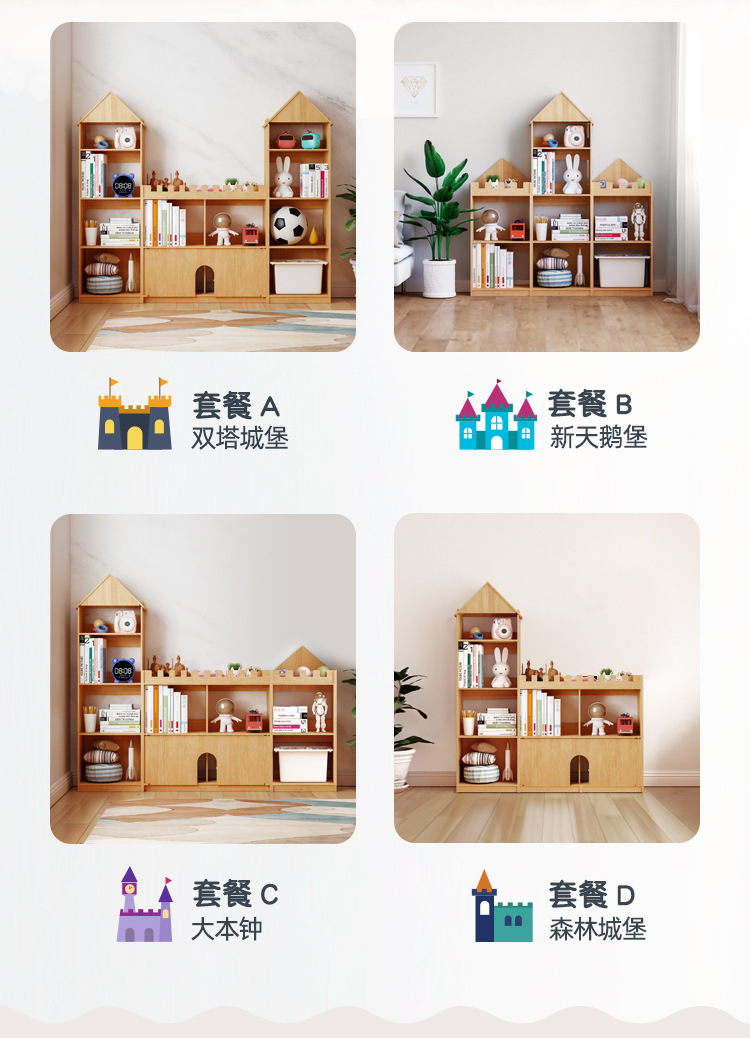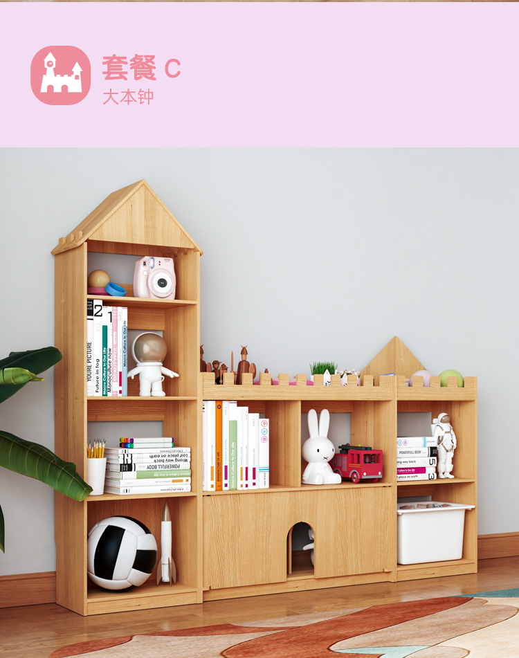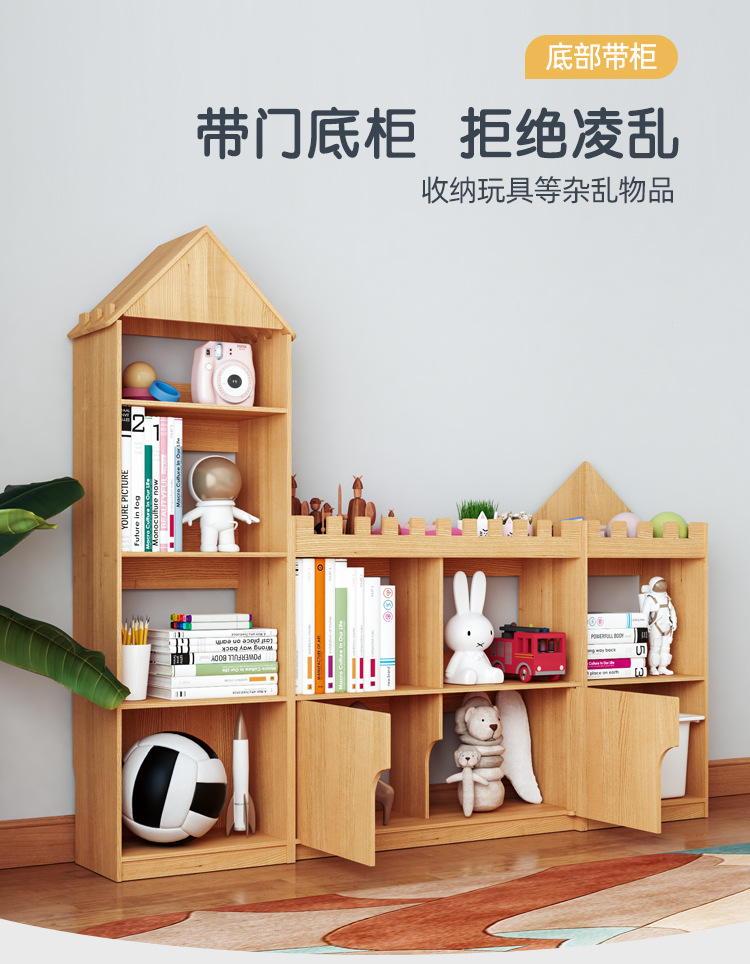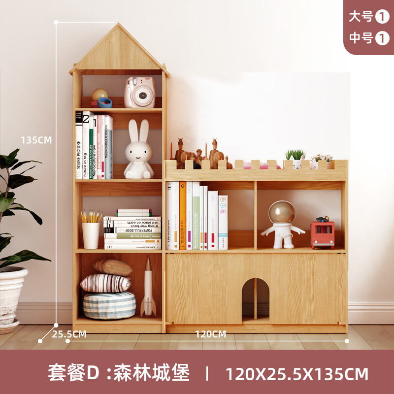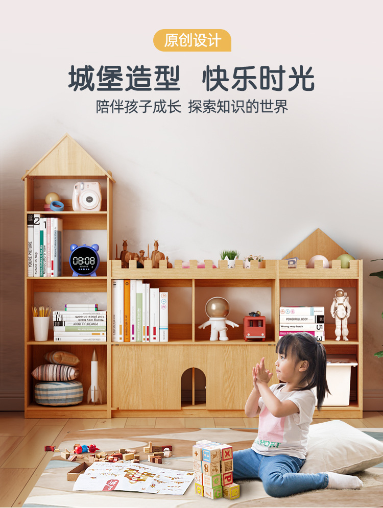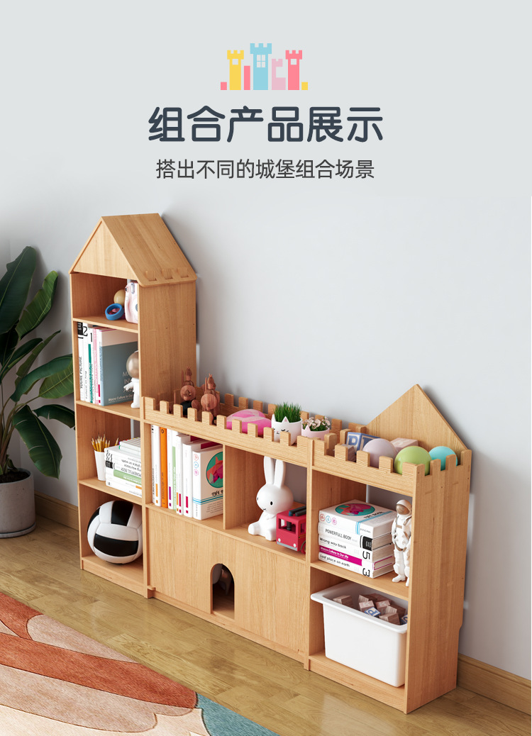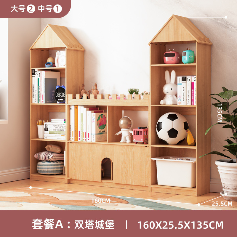 어린이 성 책장 단단한 나무 바닥 책장 보관 랙 아기 보관 창조적 인 가정용 그림책 보관 랙