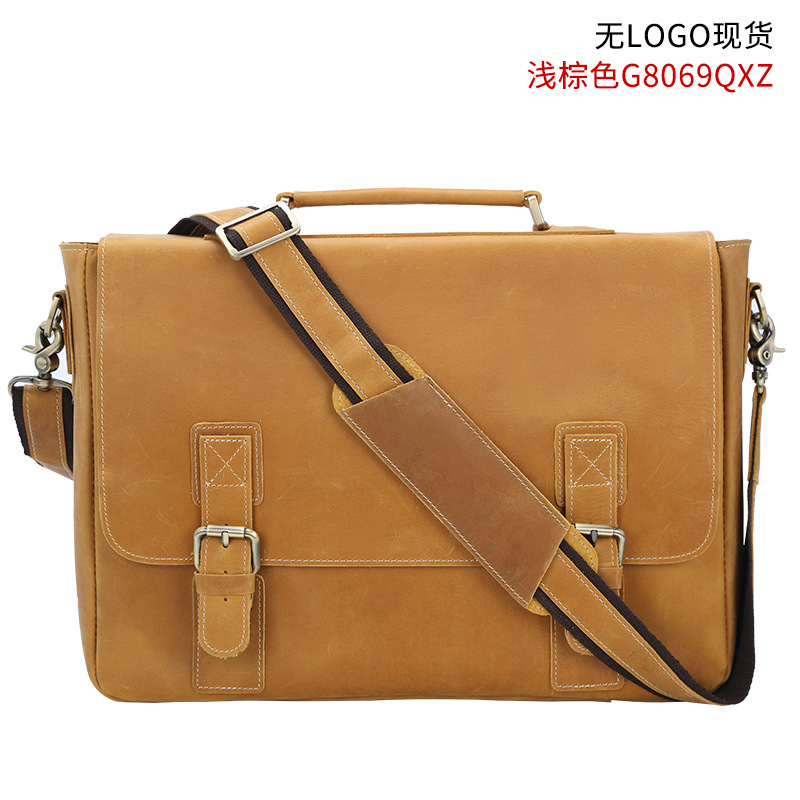 Chao Niu 새로운 첫 번째 레이어 소가죽 15.6 인치 노트북 가방 미친 말 가죽 숄더백 남성 비즈니스 서류 가방스토어 가기