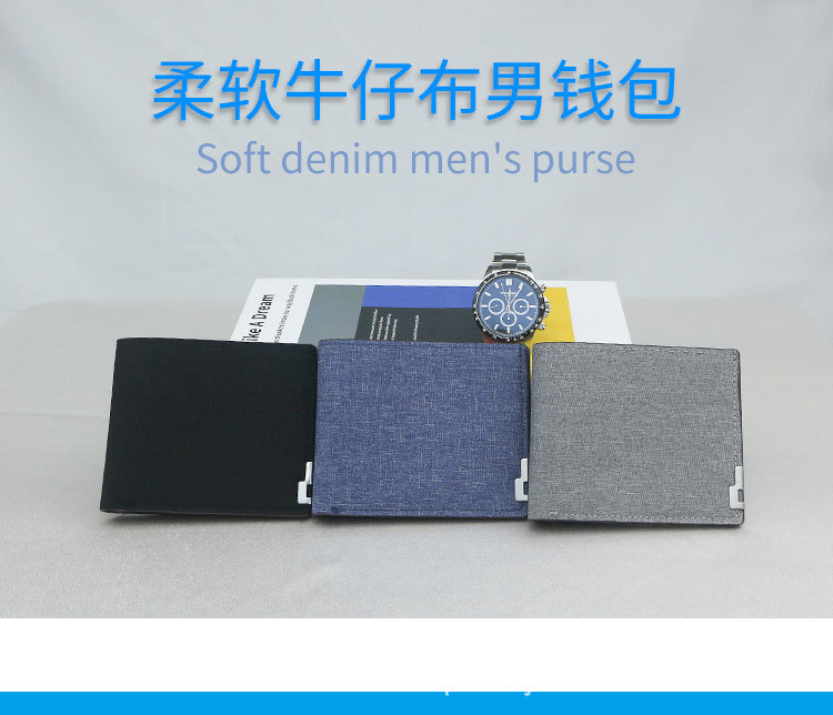 국경을 넘는 인기 상품, 대용량 다기능 반지갑, 새로운 패션 데님 남성 반지갑스토어 가기